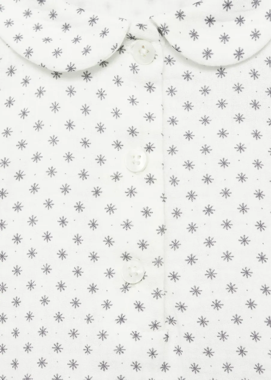 100% bomull. Model prosty. Wzorzysty. Kołnierzyk bebe. Długi rękaw. Zapięcie z przodu. Zapięcie na guziki.