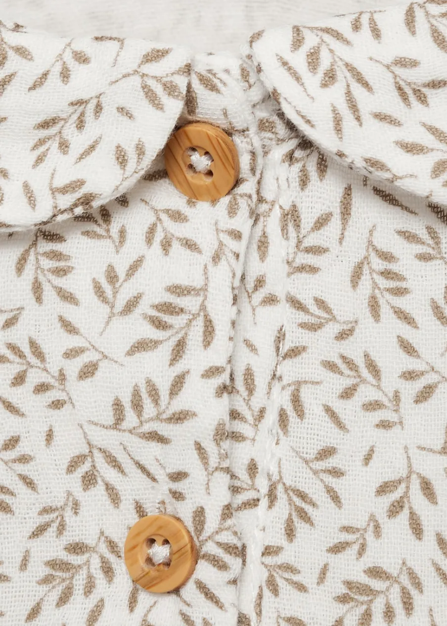 100% bomull. Kołnierzyk bebe. Model prosty. Długi rękaw. Zapięcie na guziki.