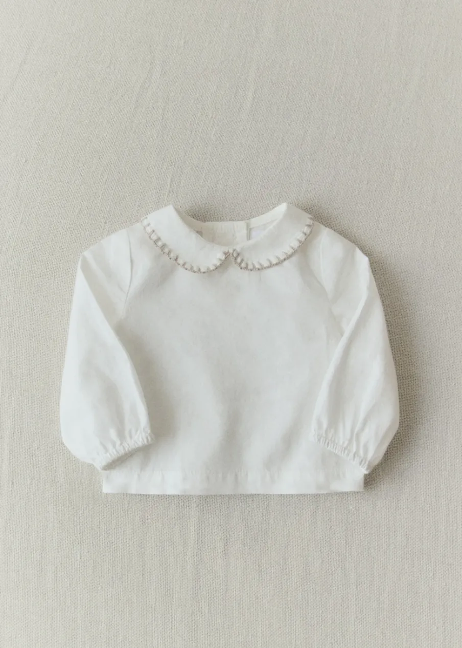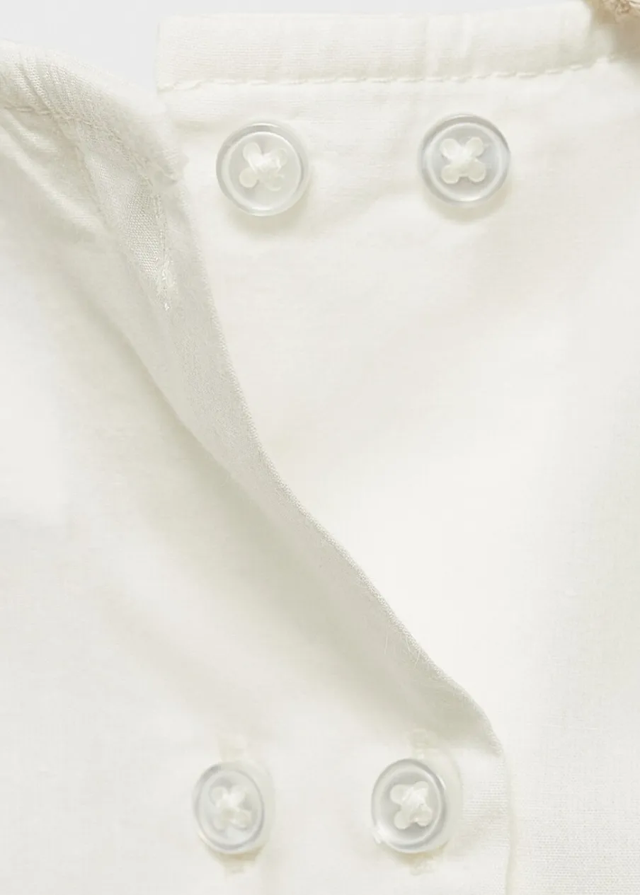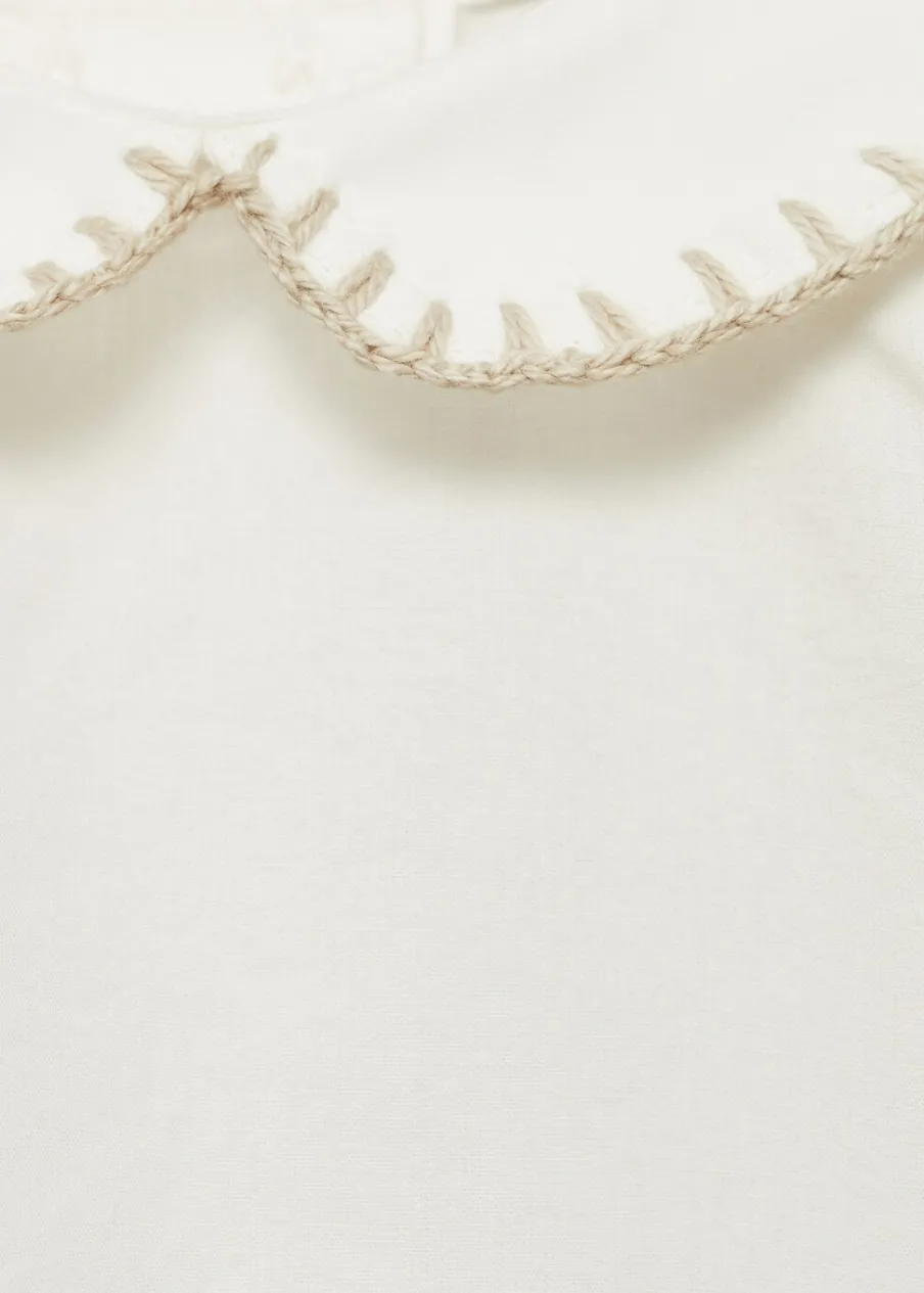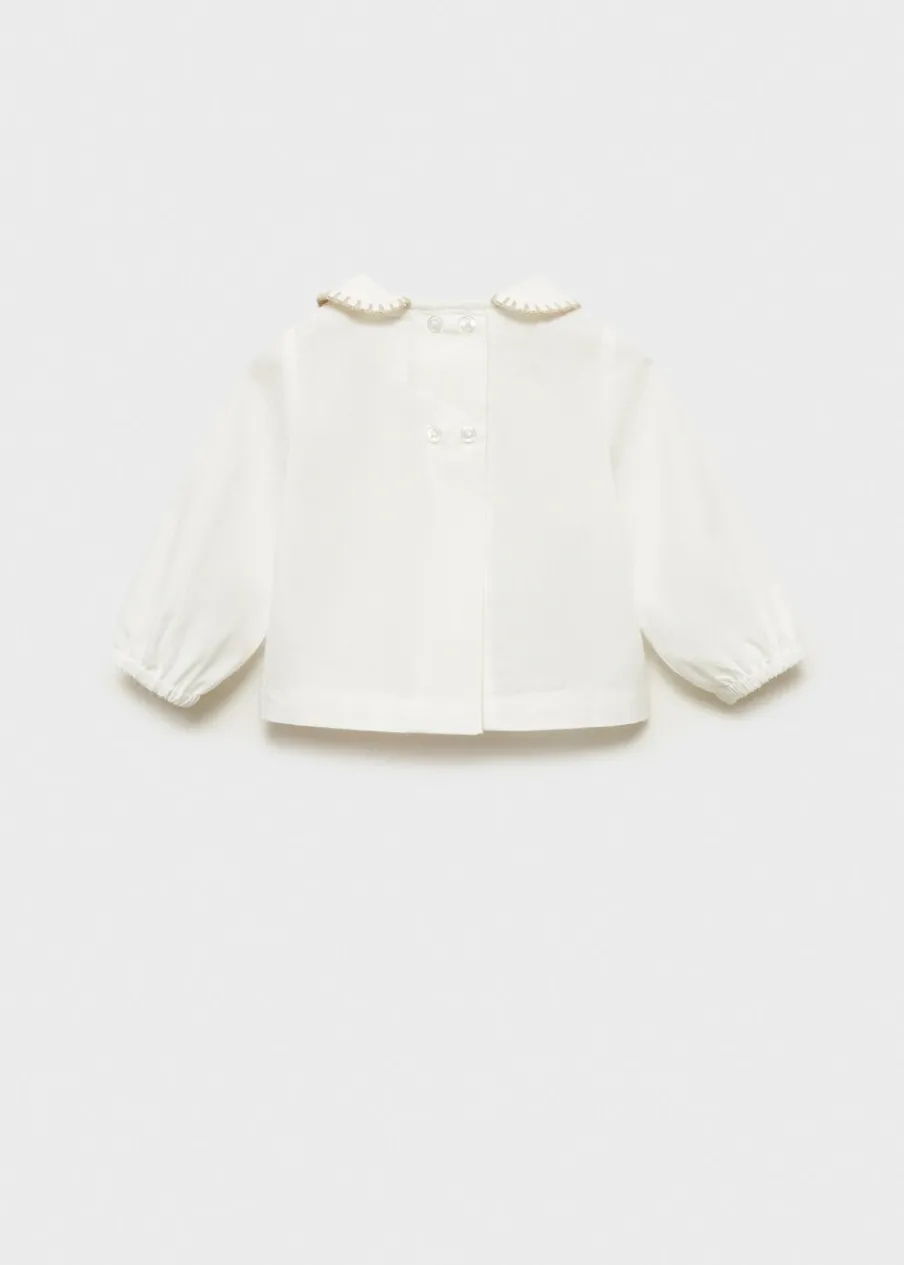 OpisBawełna 100%. Model prosty. Kołnierzyk bebe. Haftowany detal. Długi bufiasty rękaw. Zapięcie z tyłu na guziki….