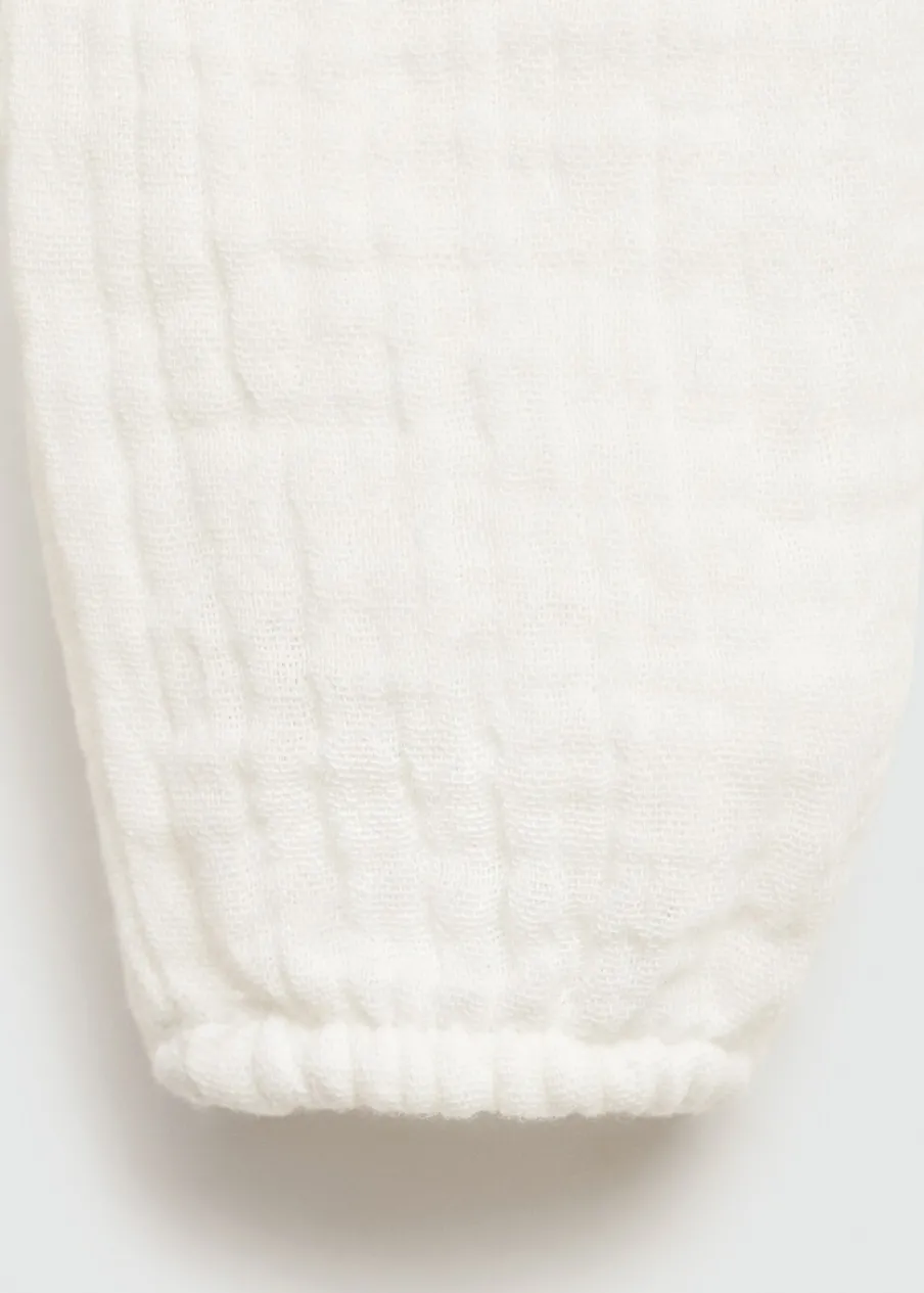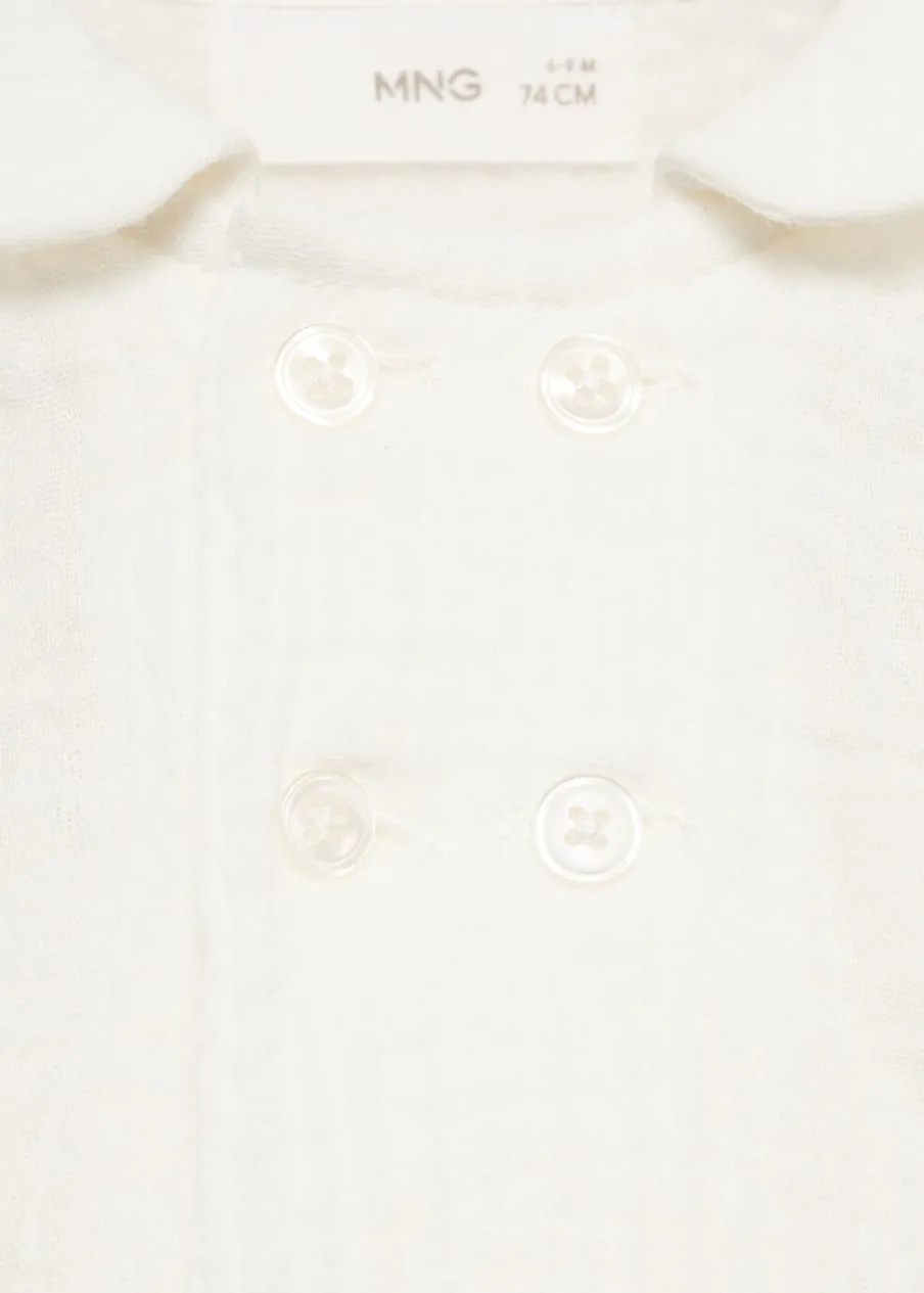 Opis100% bomull. Model prosty. Kreszowana tkanina. Kołnierzyk bebe. Długi rękaw. Dwurzędowe zapięcie.