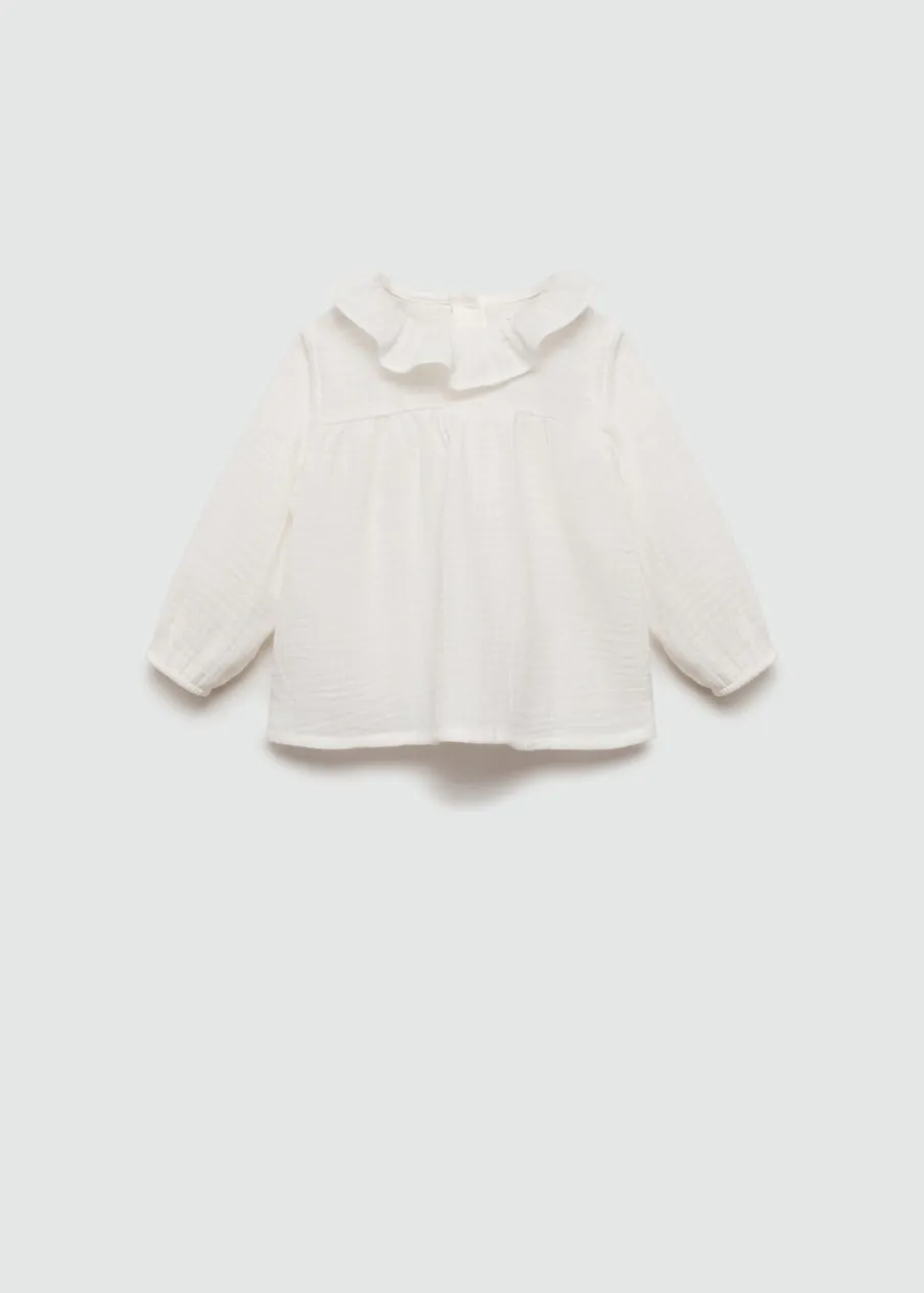 Opis100% bomull. Kreszowana tkanina. Model prosty. Okrągły dekolt. Falbanki pod szyją. Długi rękaw. Zapięcie z …