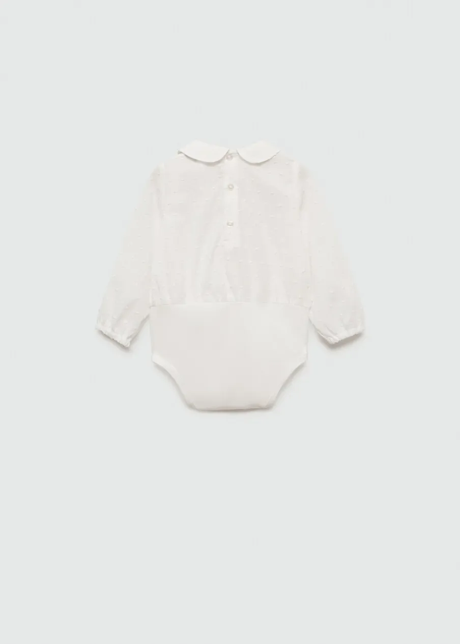 Opis100% bomull. Model prosty. Kołnierzyk bebe. Tkanina plumeti. Długi bufiasty rękaw. Zapięcie z tyłu na guziki…