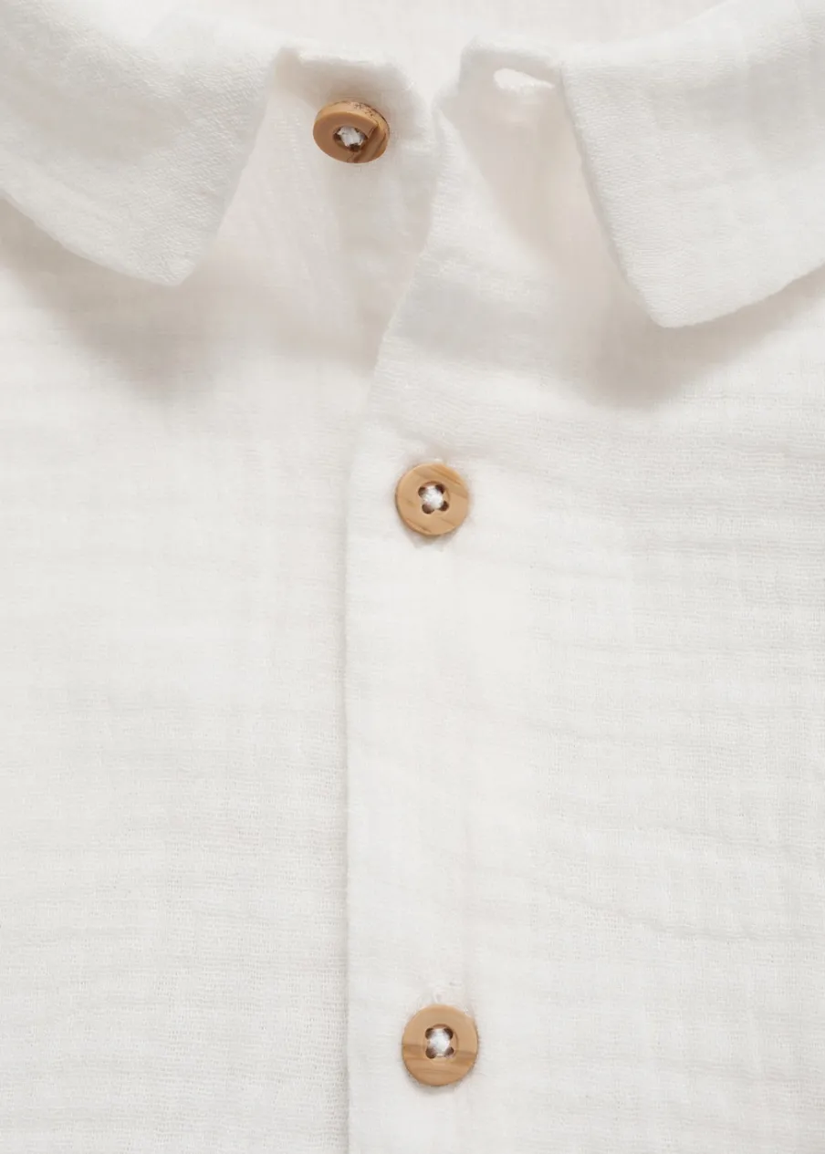 Opis100% bomull. Kreszowana tkanina. Model prosty. Kołnierzyk bebe. Długi rękaw. Zapięcie na guziki z przodu.