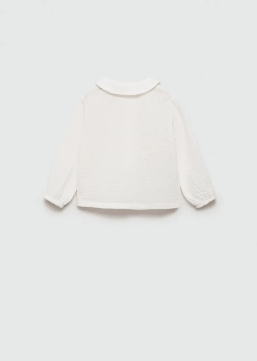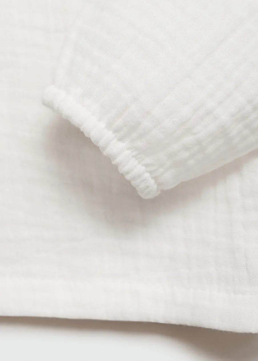 100% bomull. Kreszowana tkanina. Model prosty. Kołnierzyk bebe. Długi rękaw. Zapięcie na guziki z przodu.