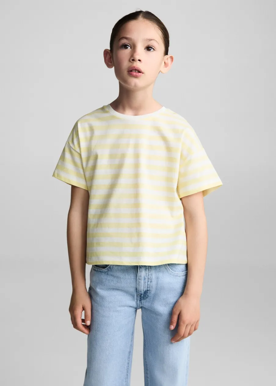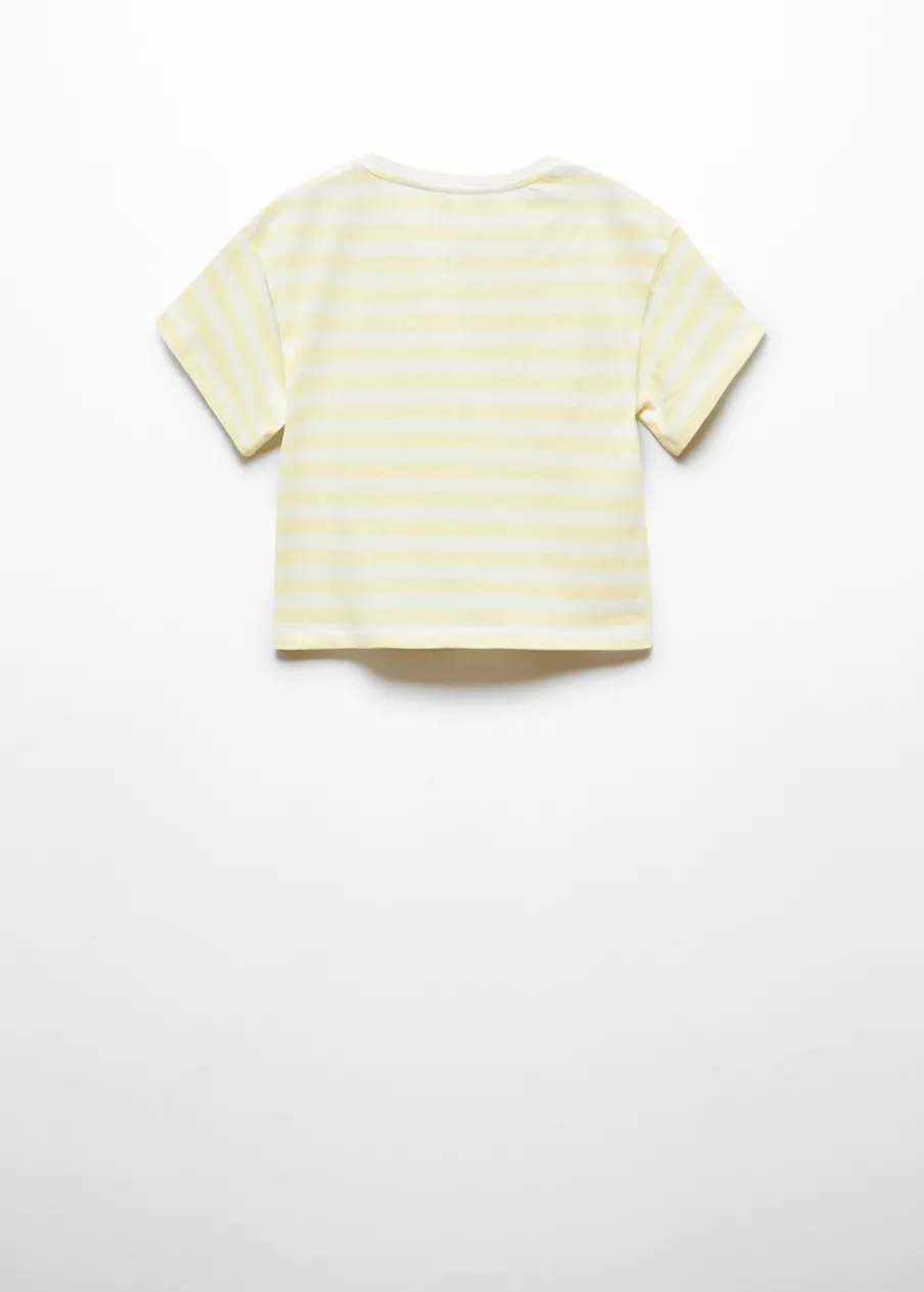 Opis100% bomull. Model prosty. Wzór w pasy. Okrągły dekolt. Krótki rękaw. Obóz letni.