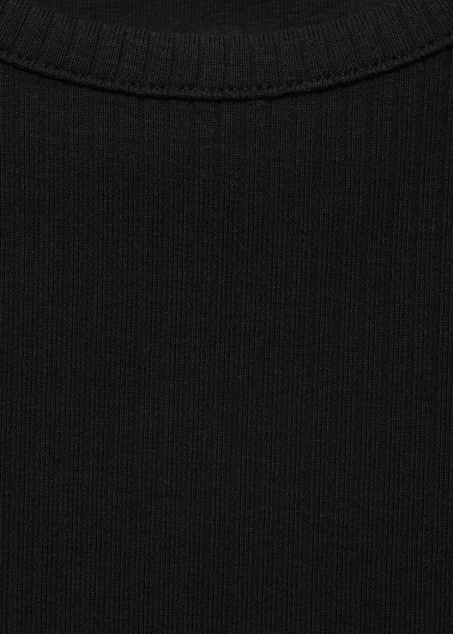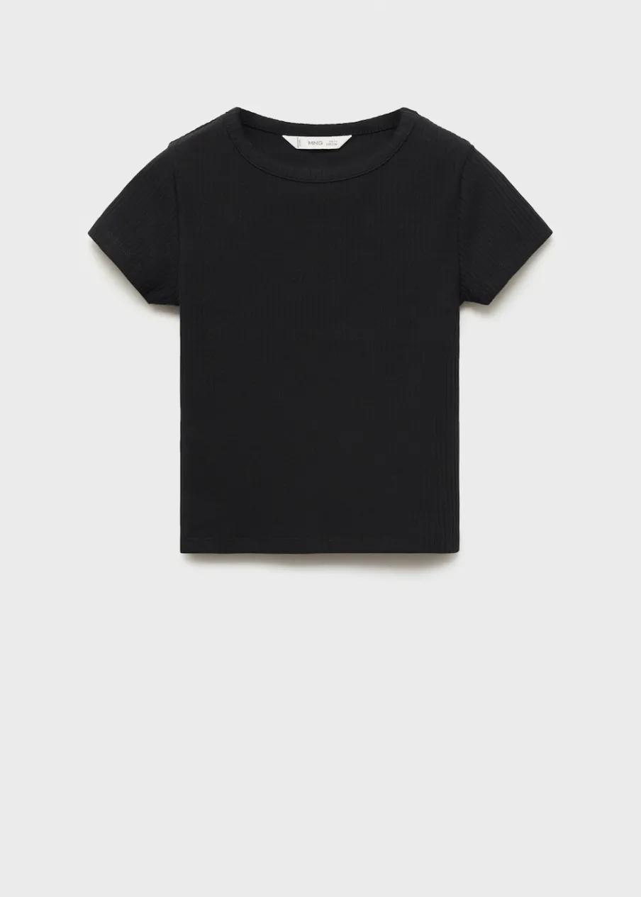 Krótki rękaw. Prążkowana tekstura. Tkanina z bawełną. Okrągły dekolt.