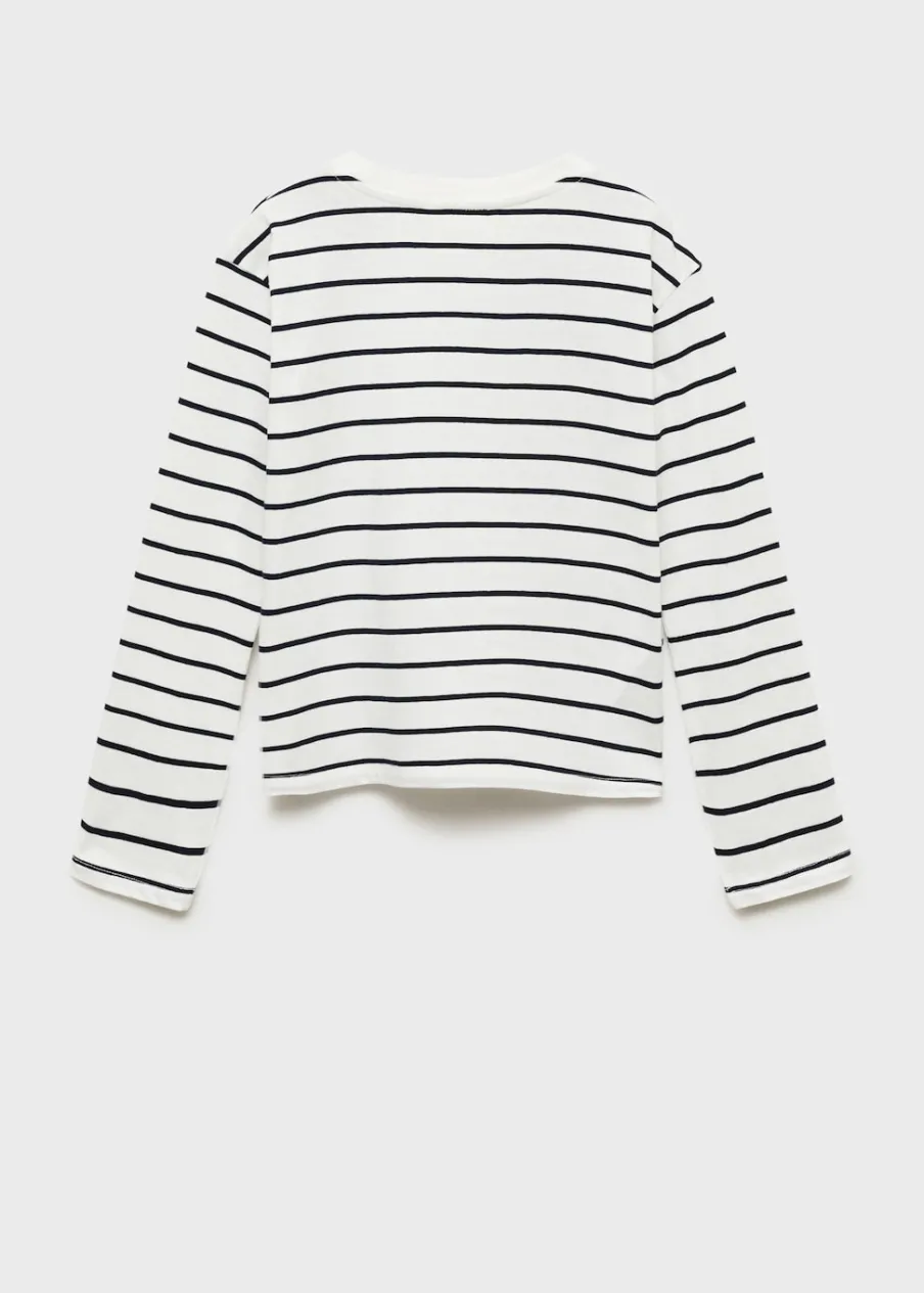 Tkanina z 100% bawełny. Deseń w pasy. Okrągły dekolt. Długi rękaw.