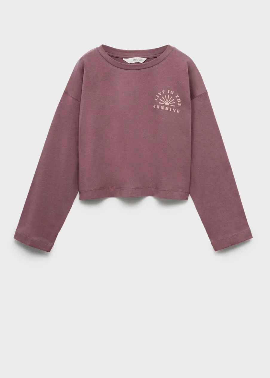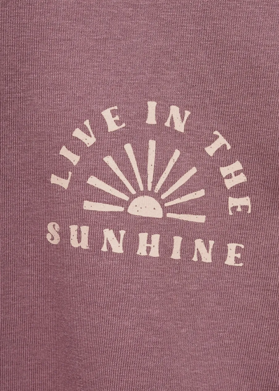 Kolekcja Powrót do szkoły. 100% bomull. Model prosty. Wzór w litery. Wzór w słońca. Kolor z efektem sprania. Okrągły dekolt. Długi rękaw. Nadruk.