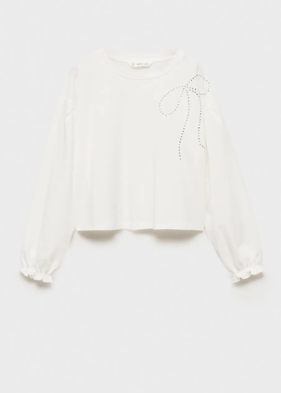 Bawełna 100%. Okrągły dekolt. Długi rękaw. Model prosty. Ozdobna kokarda ze strasem. Kolekcja wieczorowa i imprezowa. Kolekcja Bożonarodzeniowa.