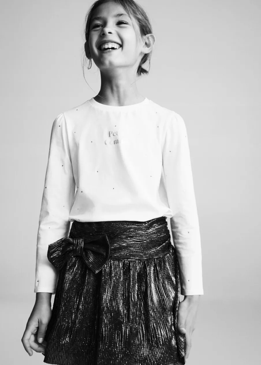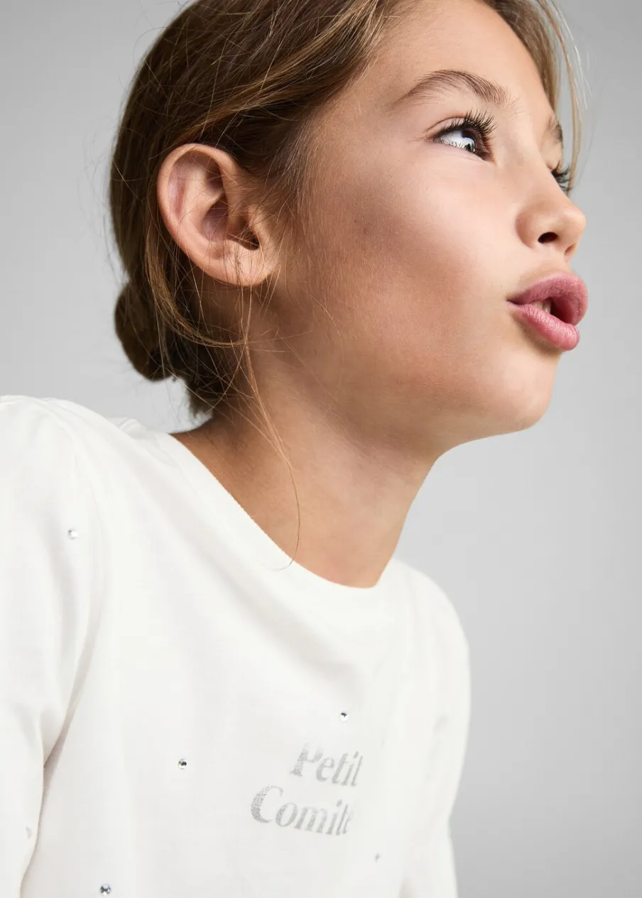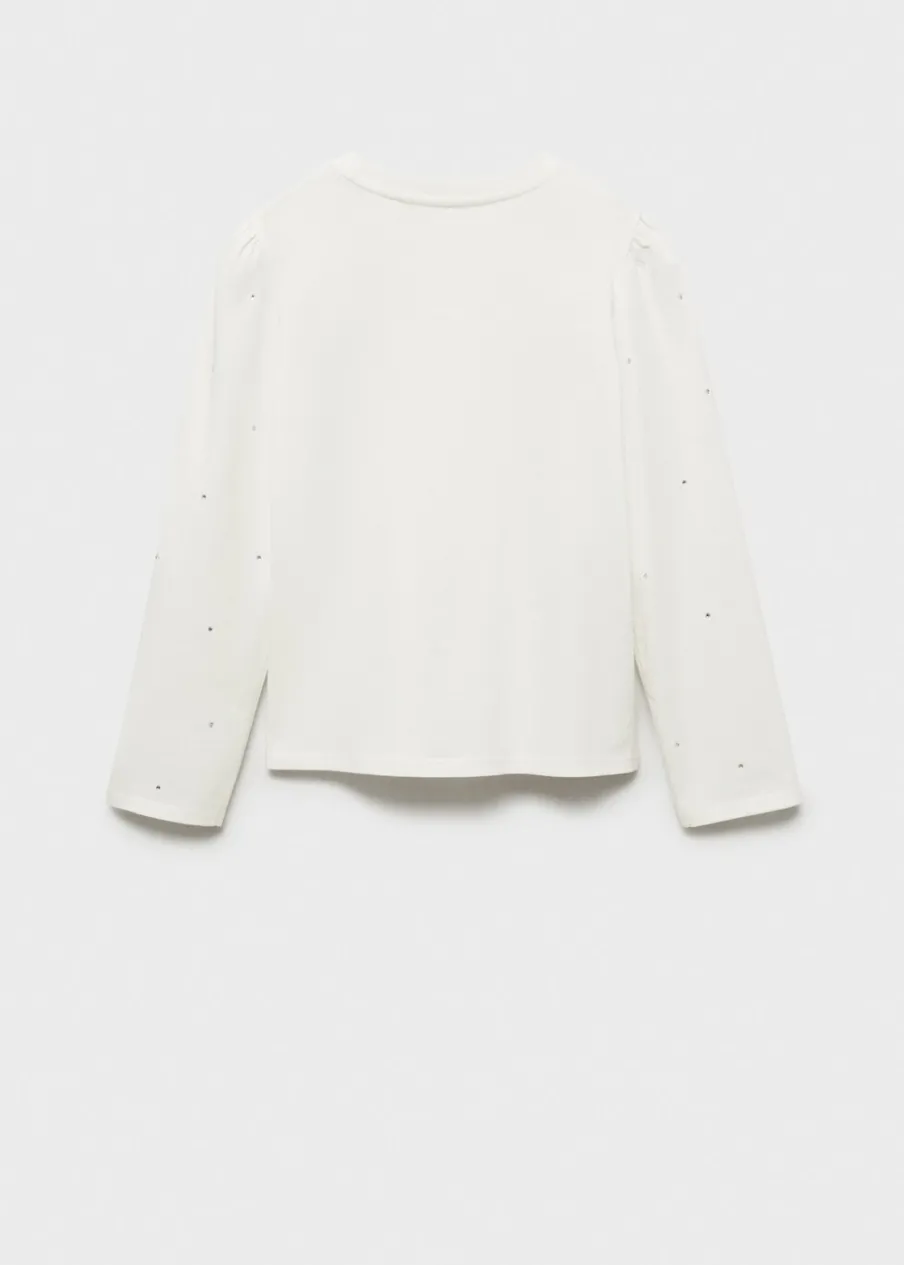 Długi rękaw. Model prosty. Okrągły dekolt. Bawełna 100%. Detal strass.