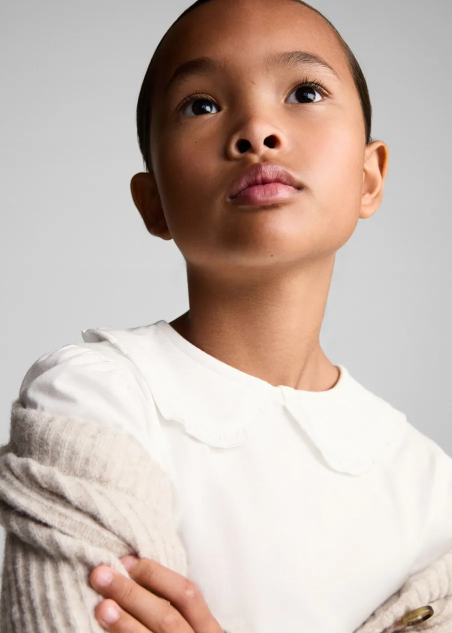 OpisBawełna 100%. Model prosty. Kołnierzyk bebe. Długi rękaw. Zapięcie na guzik z tyłu.