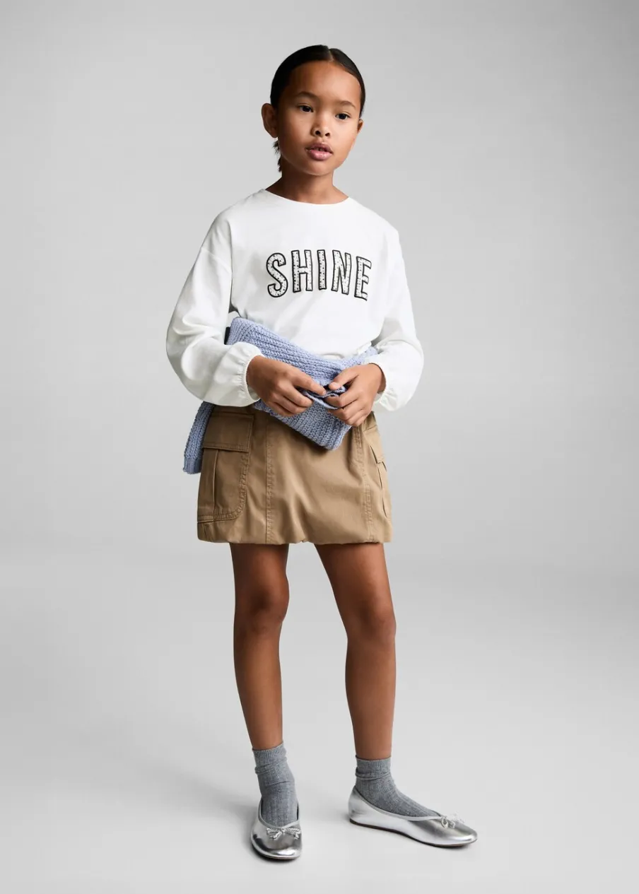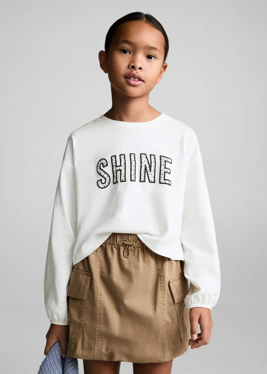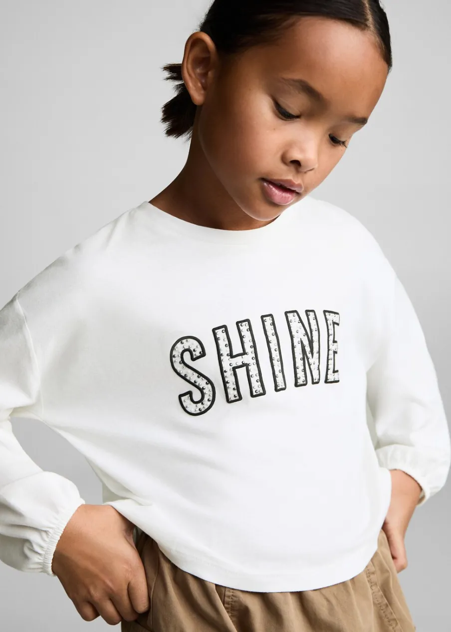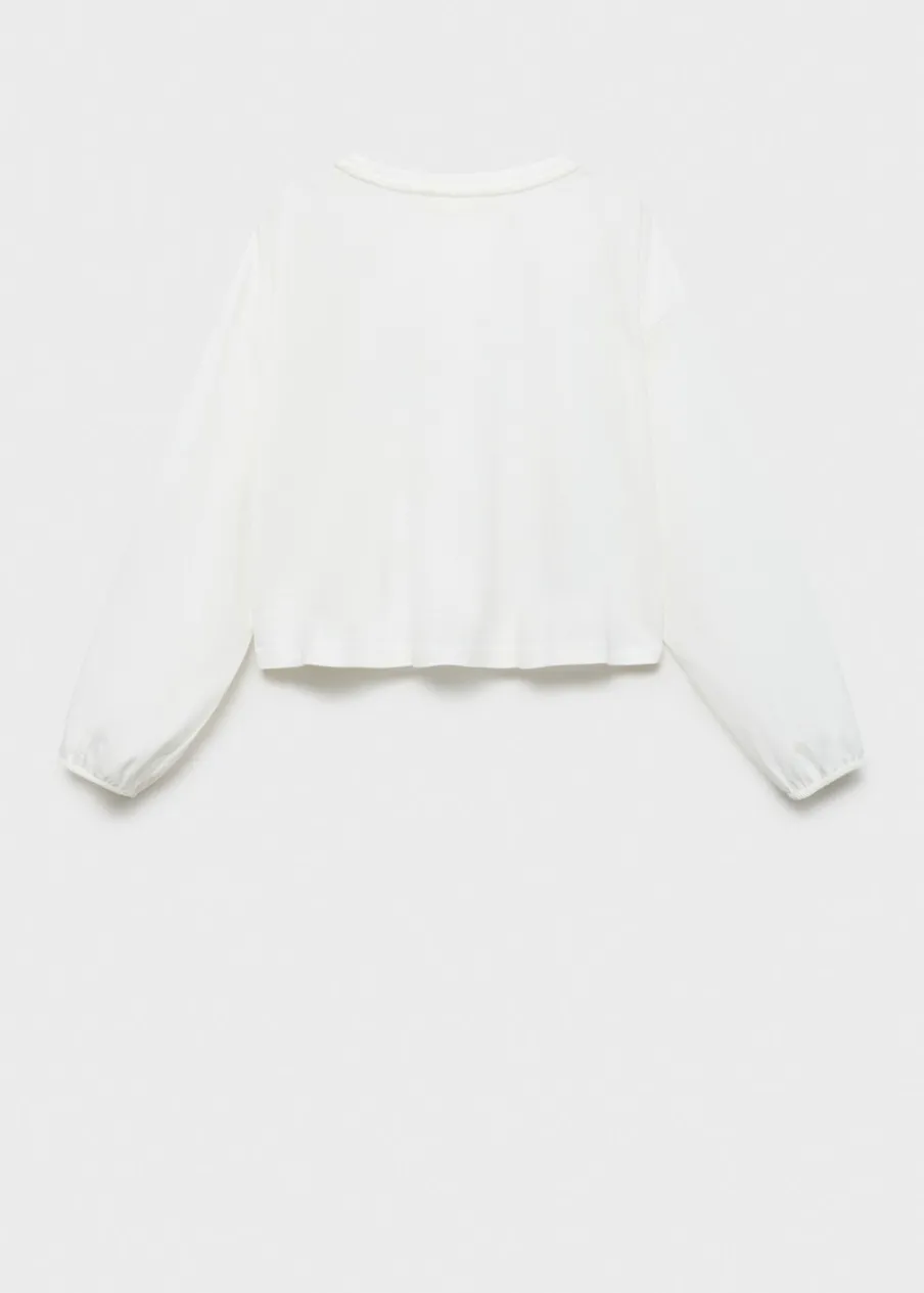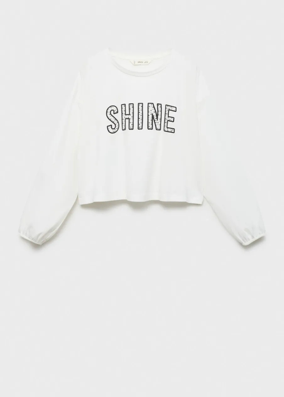 Bawełna 100%. Detal z koralikami. Okrągły dekolt. Z nadrukami. Długi bufiasty rękaw. Model prosty.