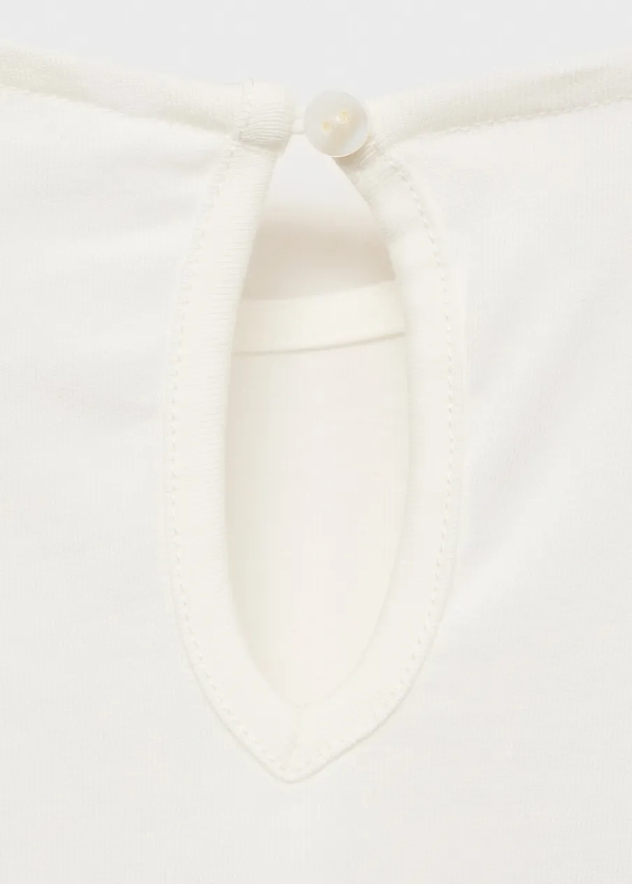 OpisBawełna 100%. Model prosty. Haftowane detale. Okrągły dekolt. Krótki bufiasty rękaw. Zapięcie na guzik pod szy…
