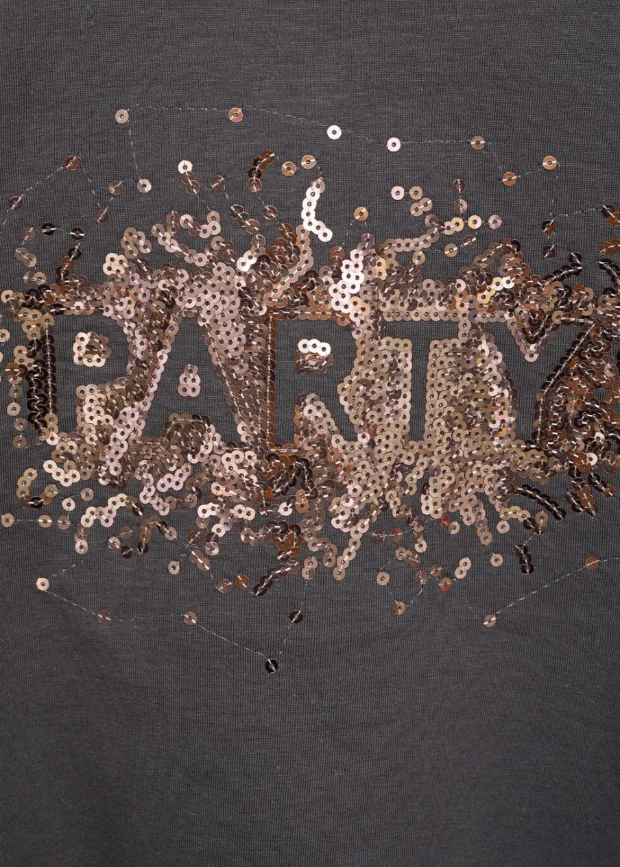 Bawełna 100%. Cekinowa ozdoba. Model prosty. Okrągły dekolt. Długi rękaw z elastycznymi marszczonymi mankietami. Kolekcja wieczorowa i imprezowa.