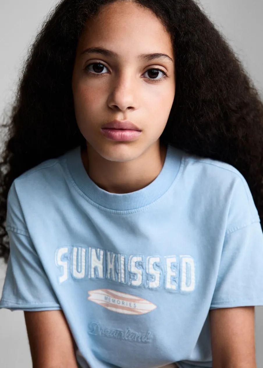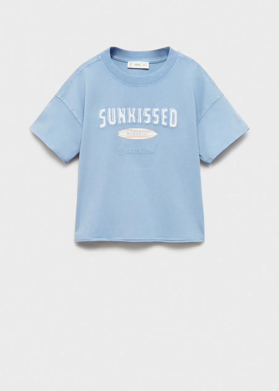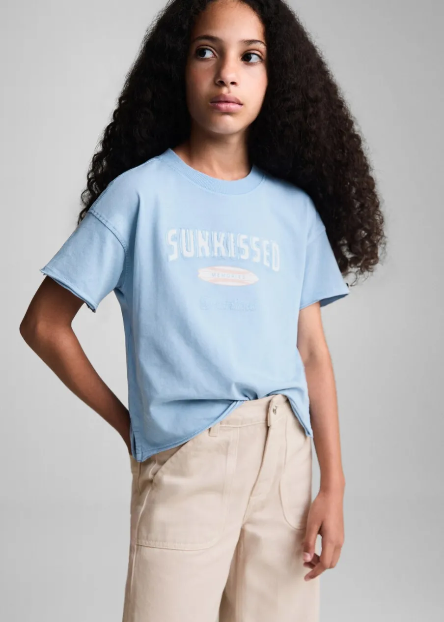 Kolekcja Powrót do szkoły. Bawełna 100%. Kolor z efektem sprania. Surferski nadruk. Haftowany detal. Okrągły dekolt. Krótki rękaw. Wysoka gramatura.