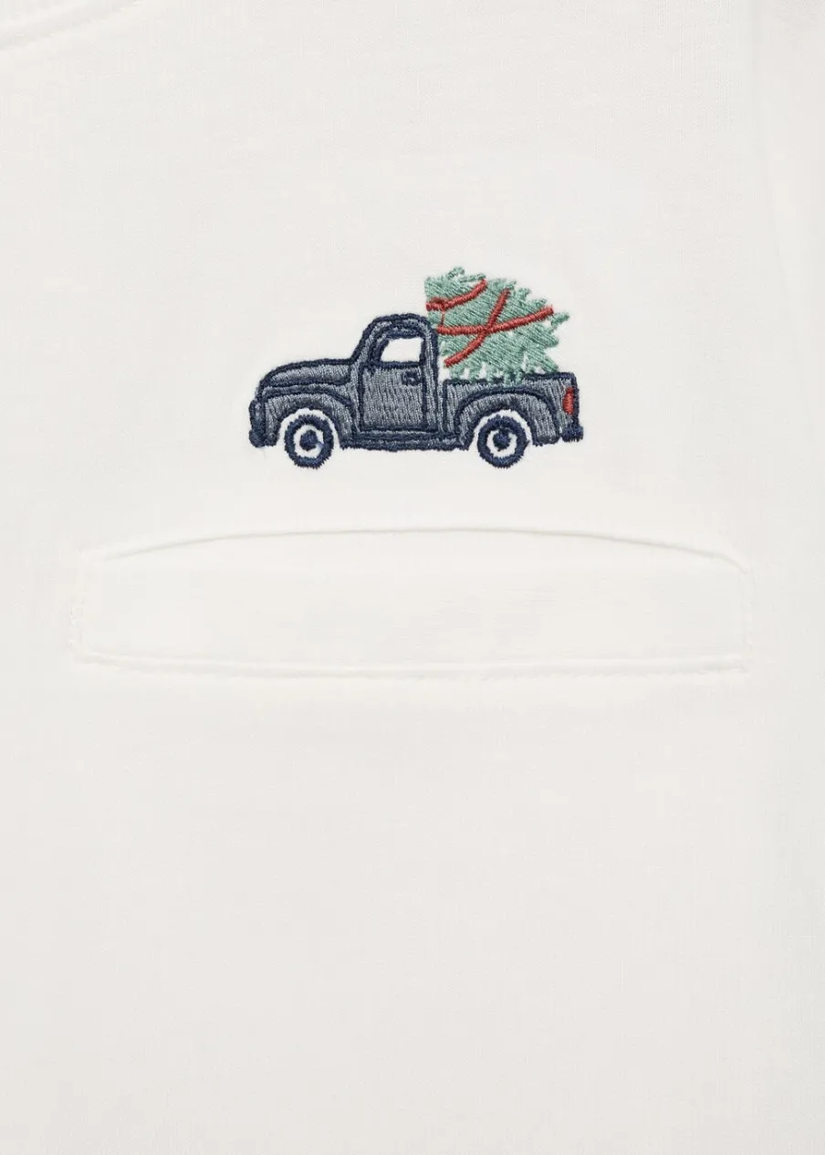 Długi rękaw. Model prosty. Okrągły dekolt. Bawełna 100%. Haftowany detal.