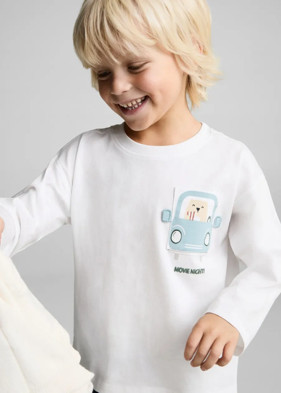 Bawełna 100%. Model prosty. Wypukły nadruk z przodu. Wypukły nadruk z tyłu. Kieszeń nakładana na piersi. Dekolt w kształcie łódki. Długi rękaw.