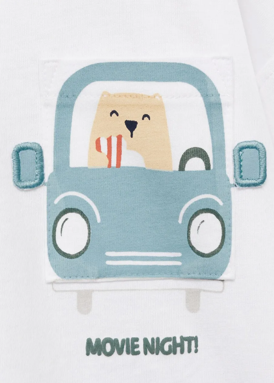 OpisBawełna 100%. Model prosty. Wypukły nadruk z przodu. Wypukły nadruk z tyłu. Kieszeń nakładana na piersi. Dekol…