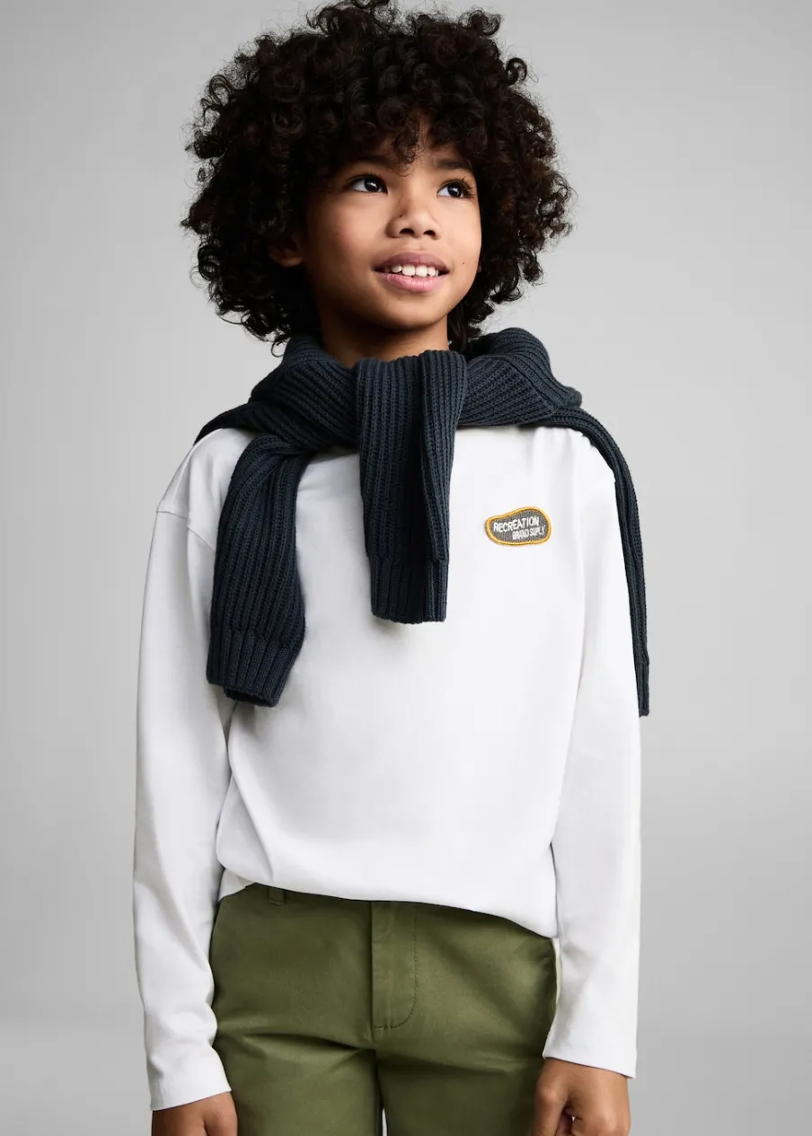 Tkanina z 100% bawełny. Długi rękaw. Model prosty. Okrągły dekolt. Haftowana wstawka z przodu. Wzór z tyłu.
