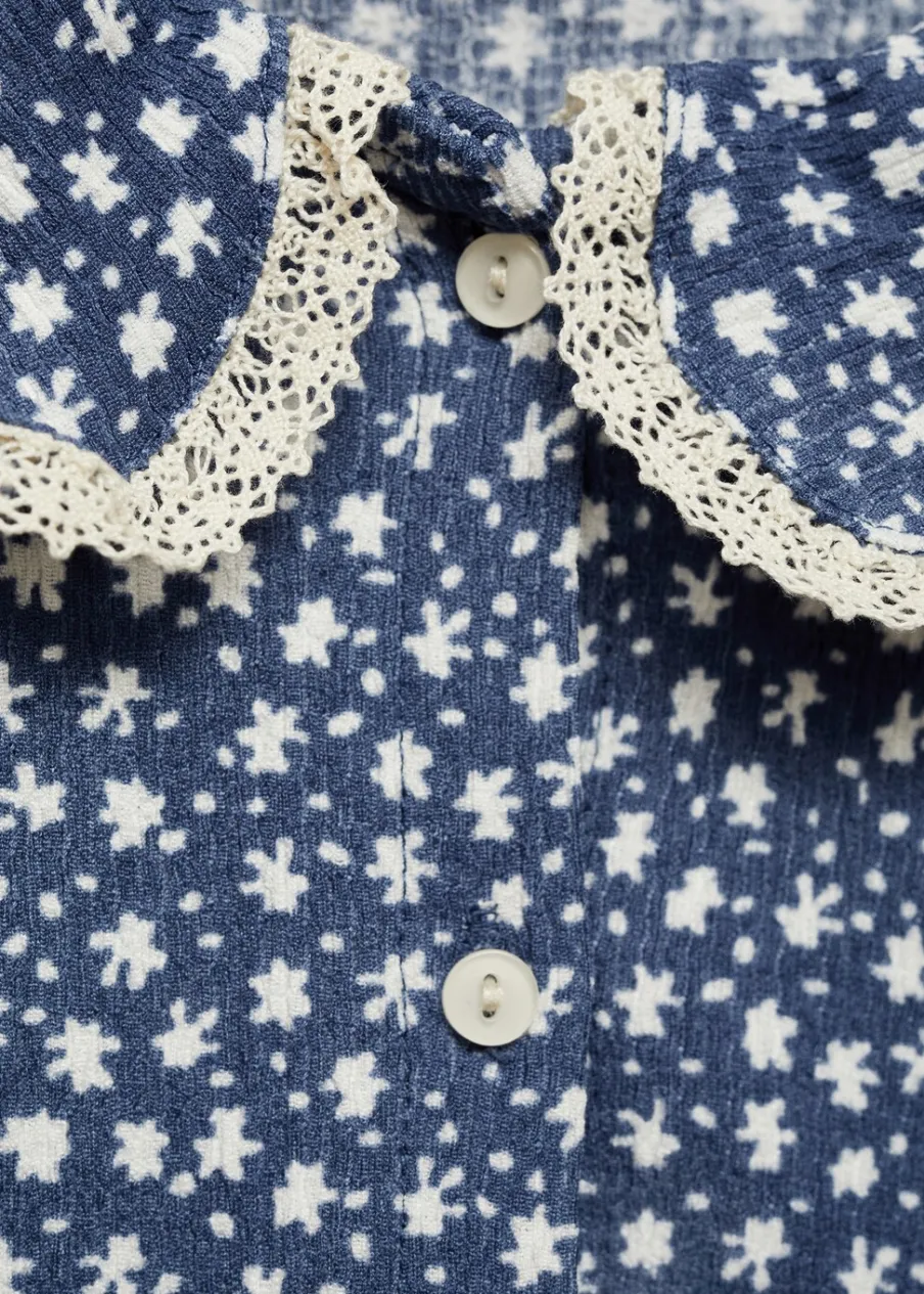 Dostępny zestaw total look. Model prosty. Nadruk. Kołnierzyk bebe. Długi rękaw. Zapięcie z tyłu na guziki.