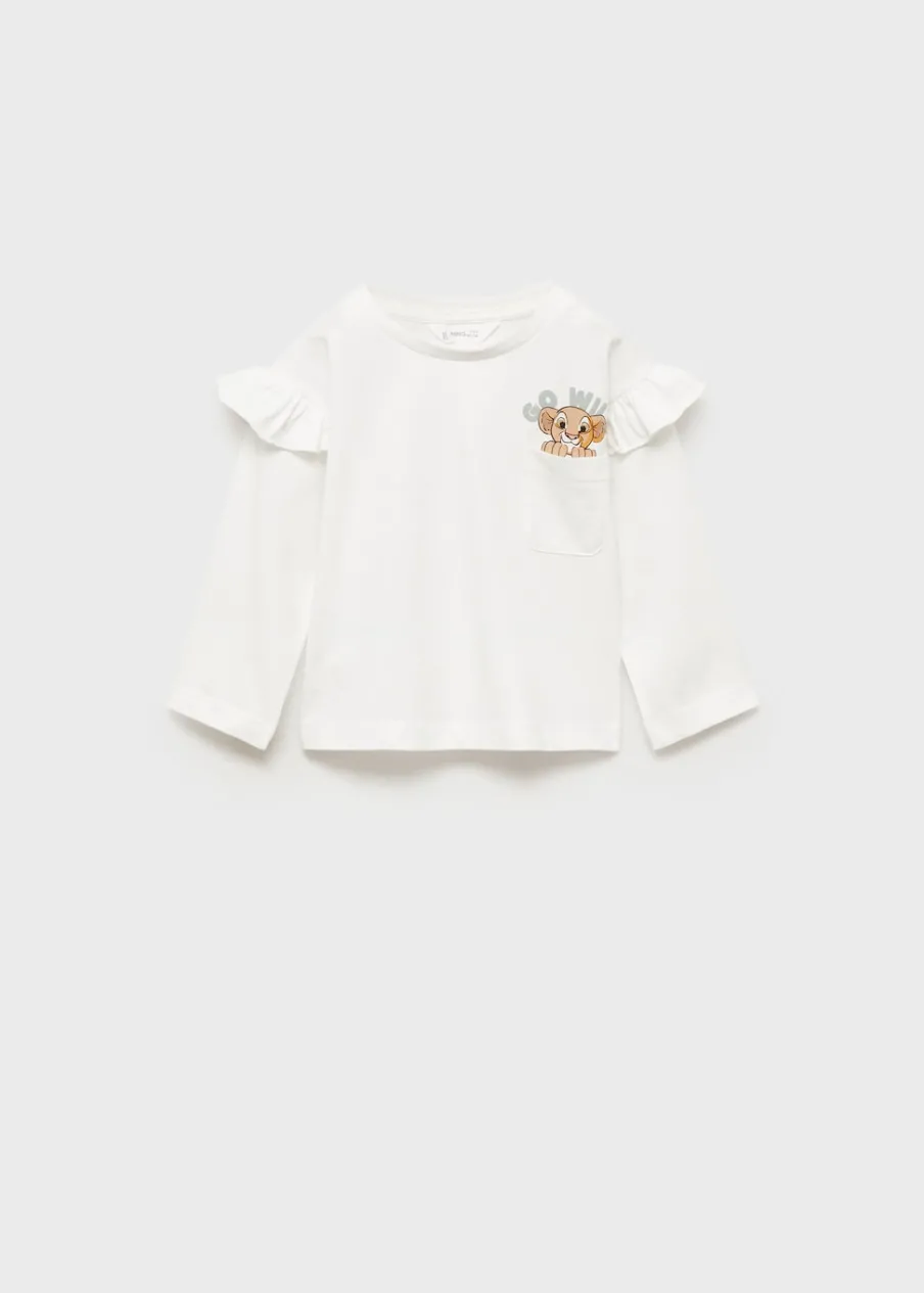 Bawełna 100%. Okrągły dekolt. Długi rękaw. Rękaw z falbaną. Nadruk Król Lew. Kieszeń nakładana na piersi. Licencjonowany nadruk.