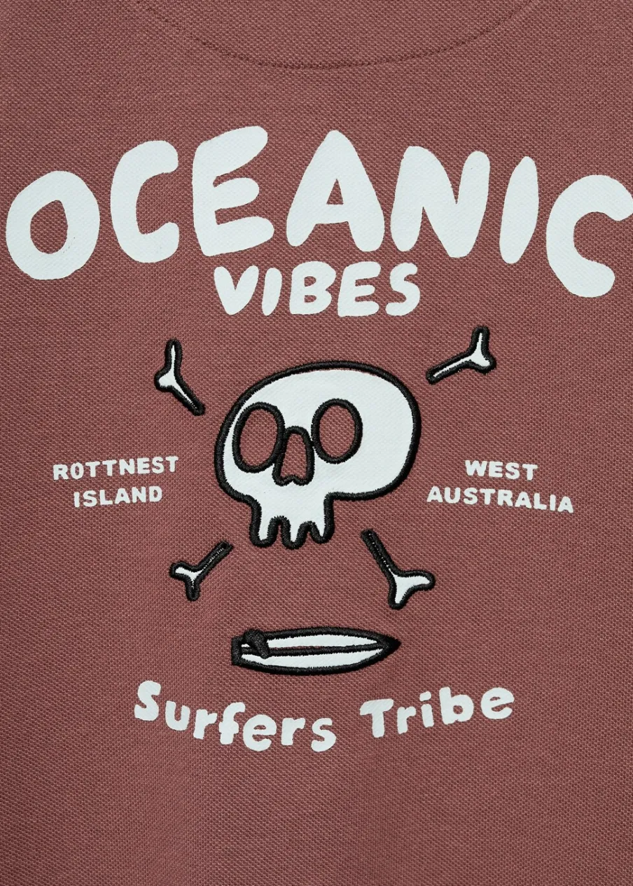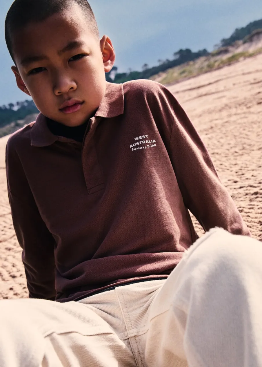 Kolekcja Powrót do szkoły. 100% bomull. Model prosty. Wzór w litery. Haftowany detal. Wzór w czaszki. Kołnierzyk polo. Zapięcie przy szyi. Długi rękaw.