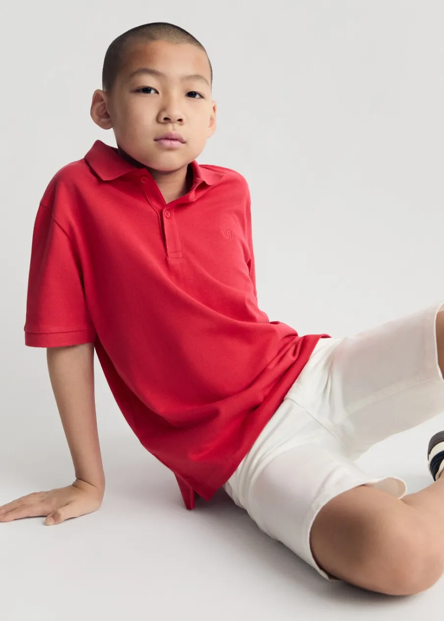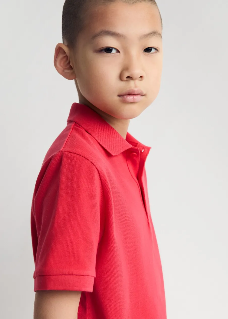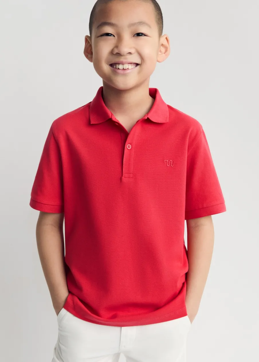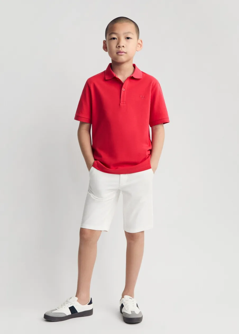Bawełna 100%. Model prosty. Krótki rękaw. Kołnierzyk polo. Kołnierzyk polo z zapięciem na guziki. Zapięcie przy szyi.