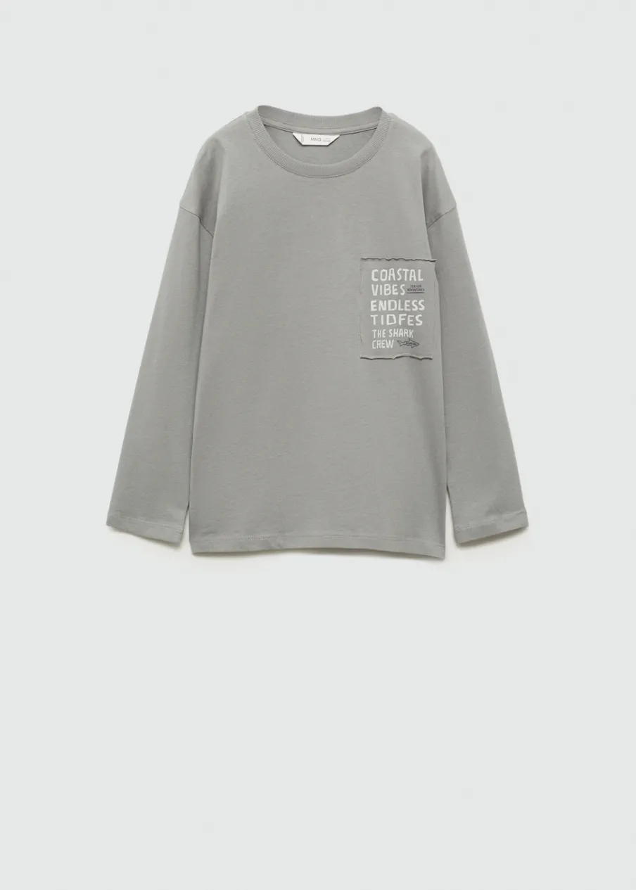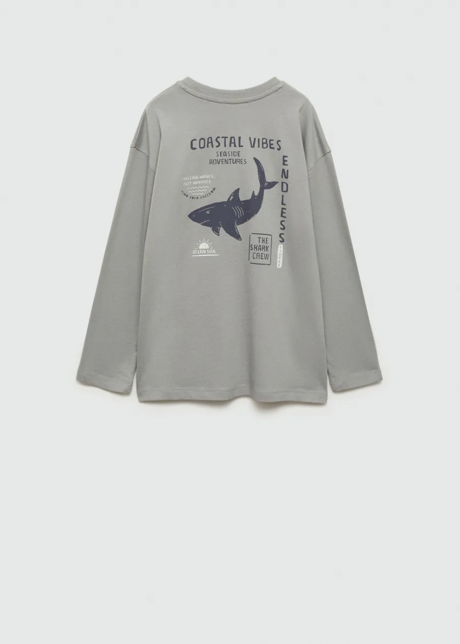 Kolekcja Powrót do szkoły. Bawełna 100%. Model prosty. Nadruk w rekiny. Kolor z efektem sprania. Okrągły dekolt. Długi rękaw.