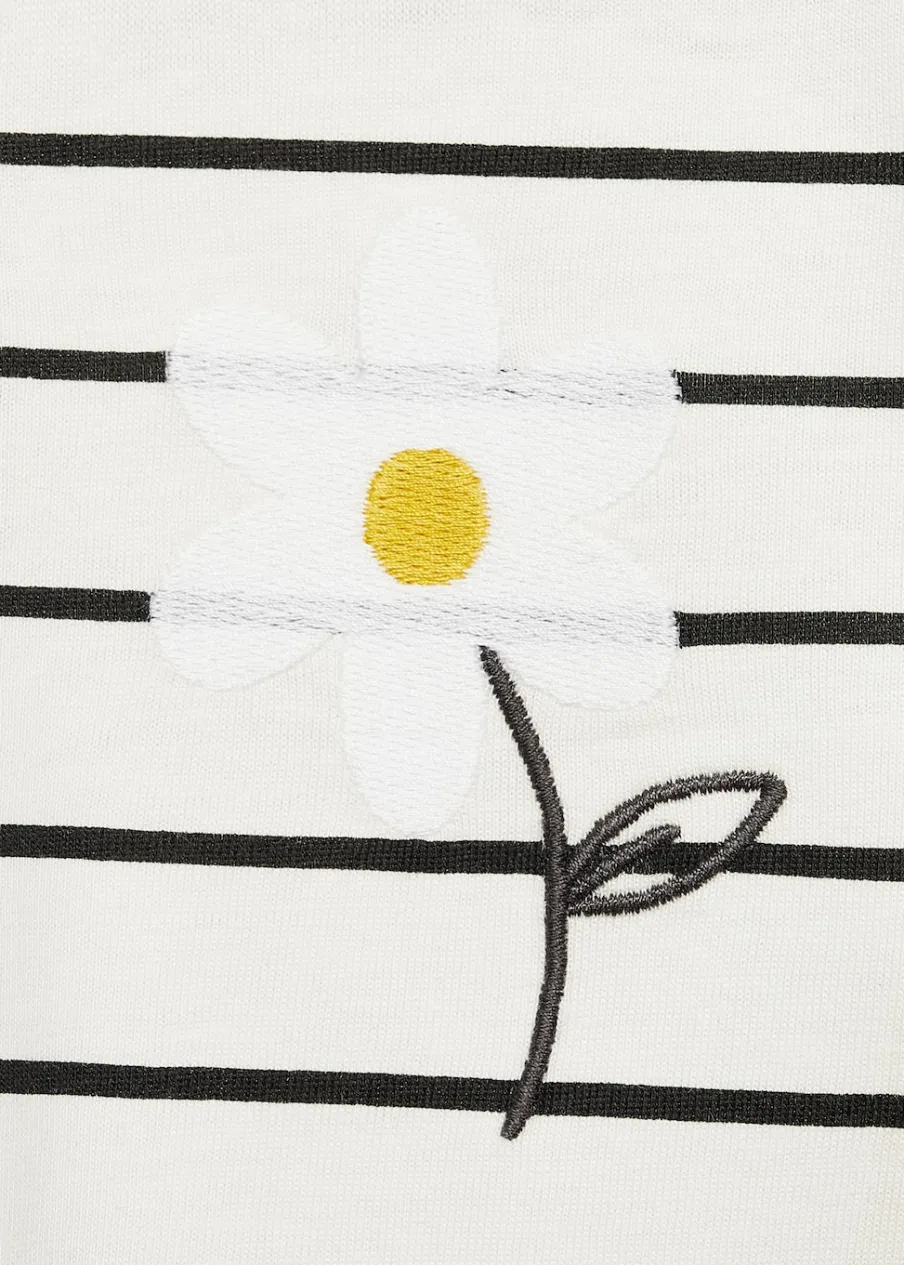 OpisModel prosty. Okrągły dekolt. Długi bufiasty rękaw. Bawełna 100%. Wzór w paski. Haftowany detal.