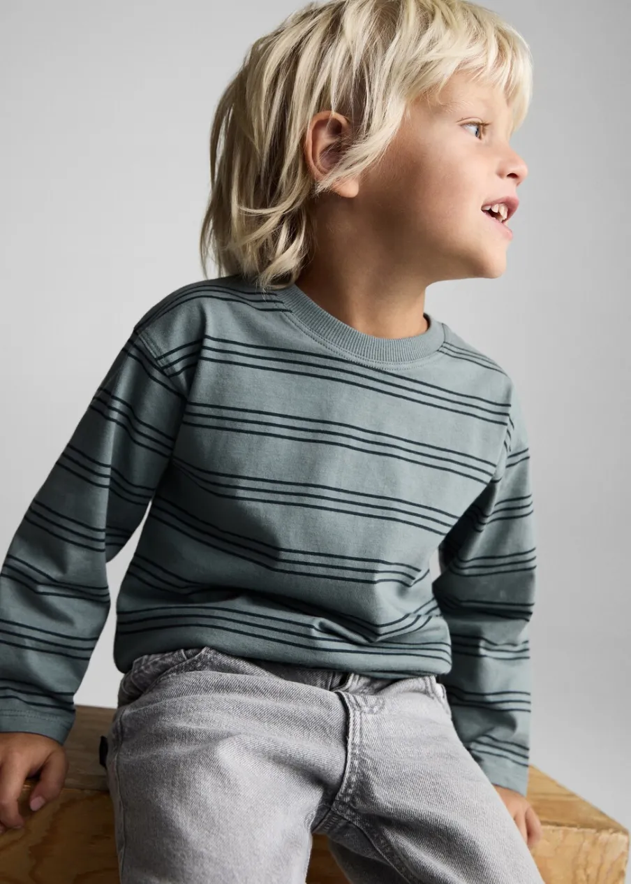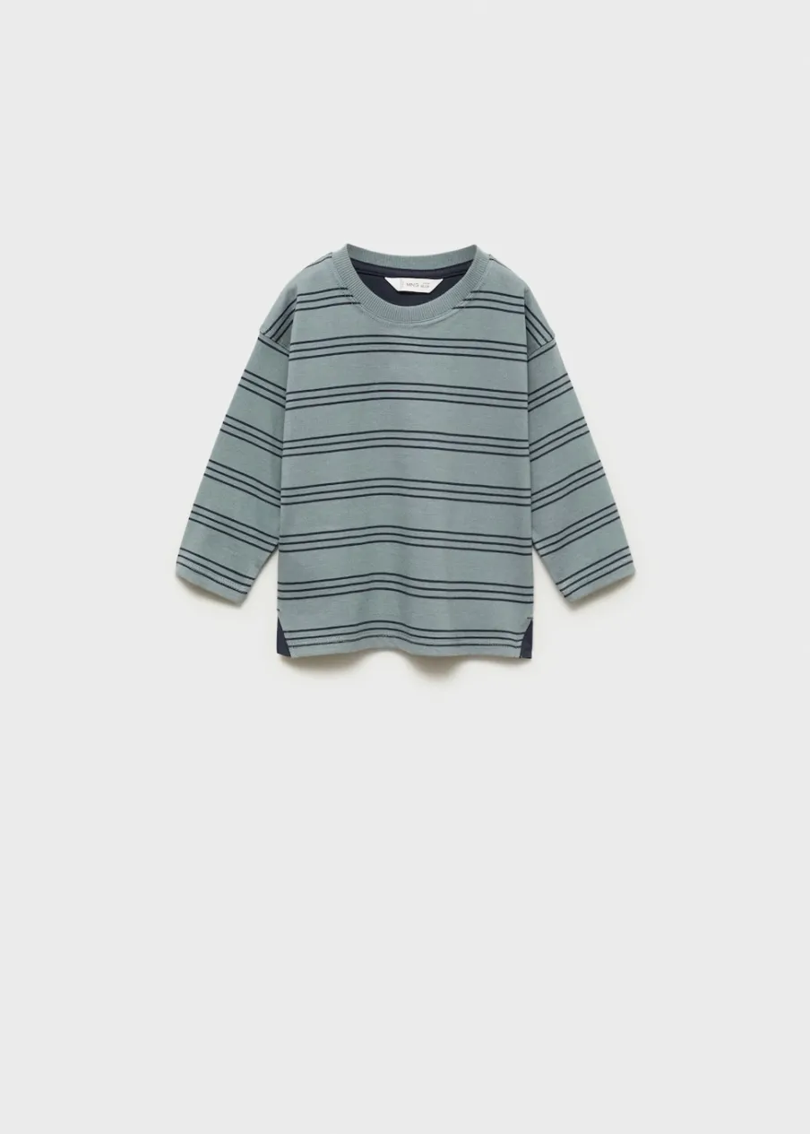 Bawełna 100%. Model prosty. Okrągły dekolt. Wzór w potrójne paski. Rozcięcie u dołu.