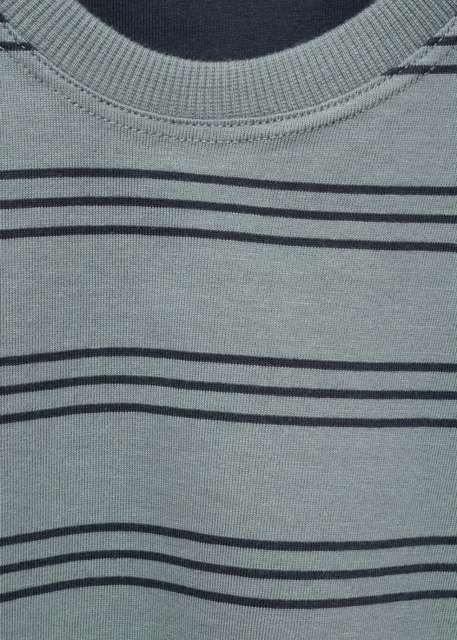 OpisBawełna 100%. Model prosty. Okrągły dekolt. Wzór w potrójne paski. Rozcięcie u dołu.