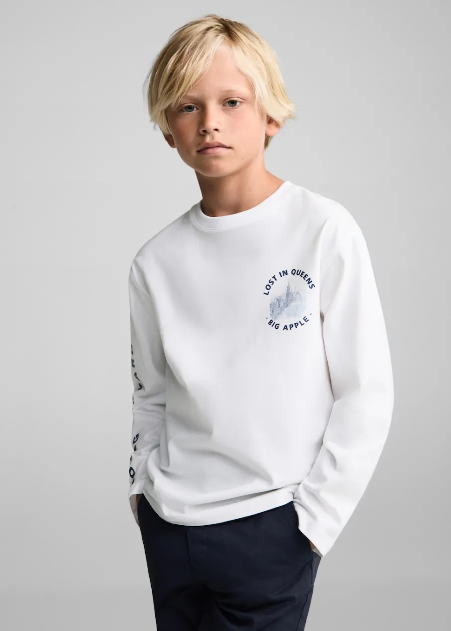 Kolekcja Powrót do szkoły. 100% bomull. Model prosty. Wzór w litery. Okrągły dekolt. Długi rękaw. Nadruk.