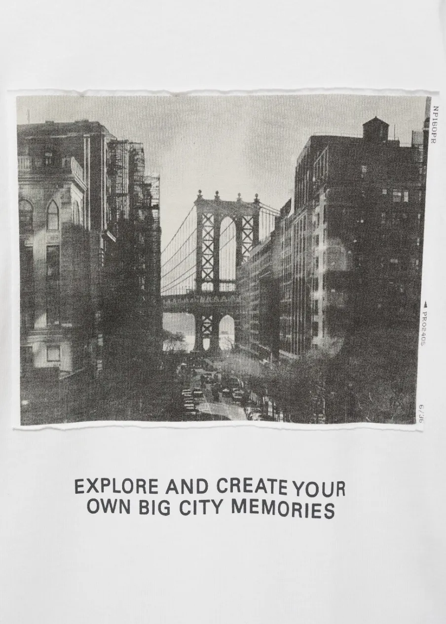 Tkanina z bawełną. Wzorzysty. Okrągły dekolt. Długi rękaw.