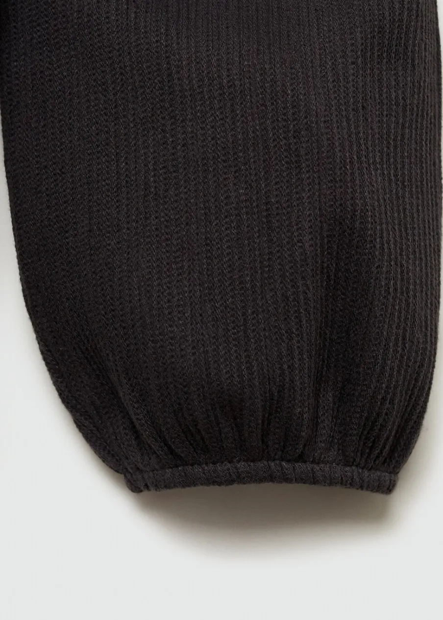 OpisModel prosty. Okrągły dekolt. Długi bufiasty rękaw. Bez zapięcia. Bawełna 100%.