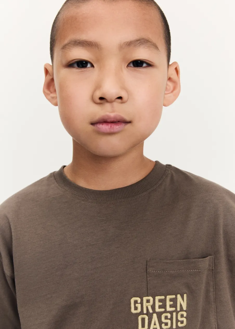 Kolekcja Powrót do szkoły. 100% bomull. Model prosty. Haftowany detal. Wzór w litery. Model długi. Okrągły dekolt. Długi rękaw.