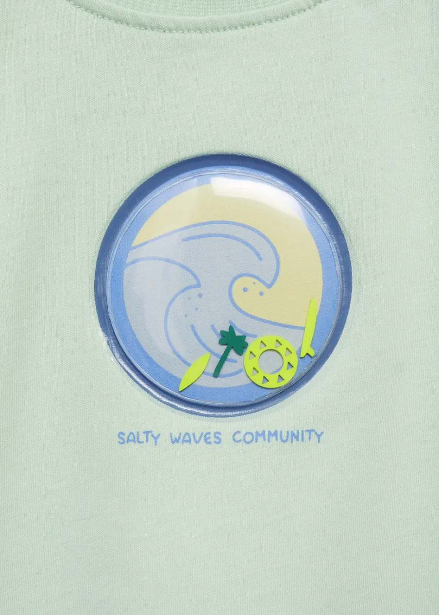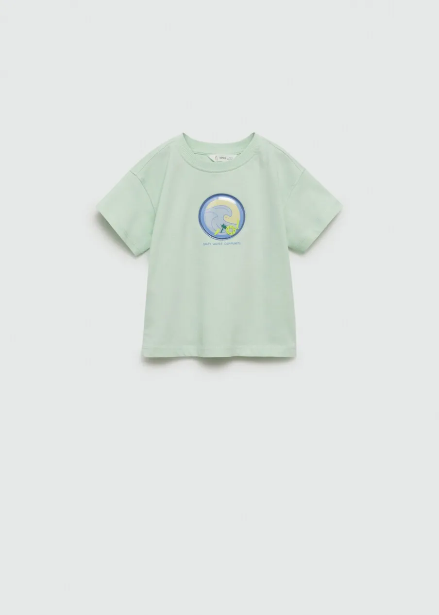 100% bomull. Model prosty. Wypukły nadruk. Surferski nadruk. Okrągły dekolt. Krótki rękaw.