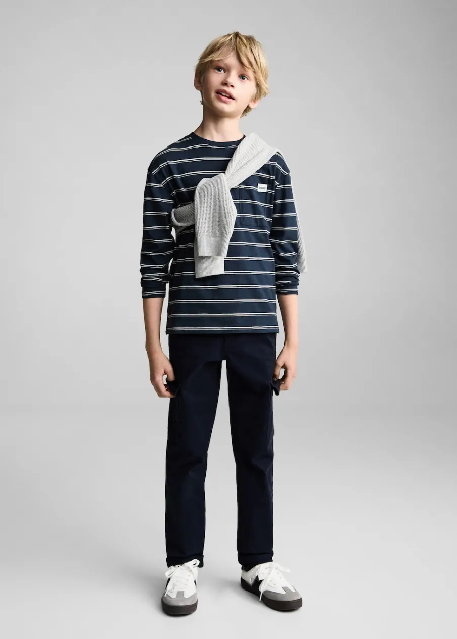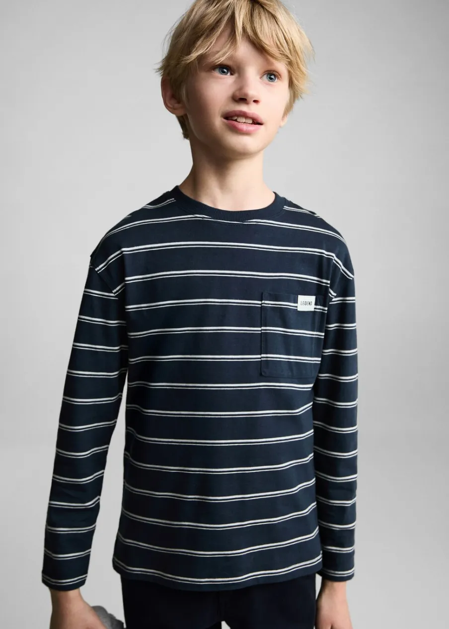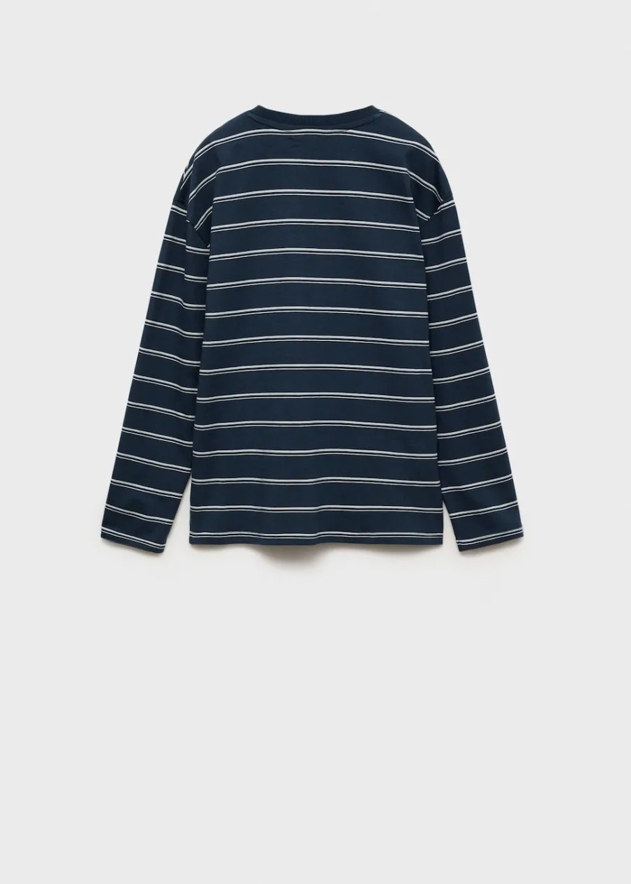 Bawełna 100%. Tkanina w paski. Kieszonka na piersi. Okrągły dekolt. Długi rękaw.