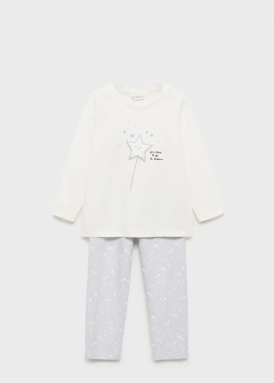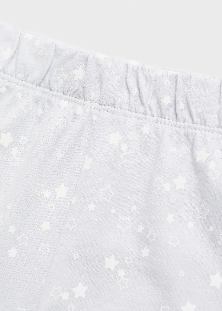 Zestaw piżamowy: koszulka i spodnie. Model długi. Wzór w gwiazdki. Model prosty. Okrągły dekolt. Długi rękaw. Elastyczny pas.