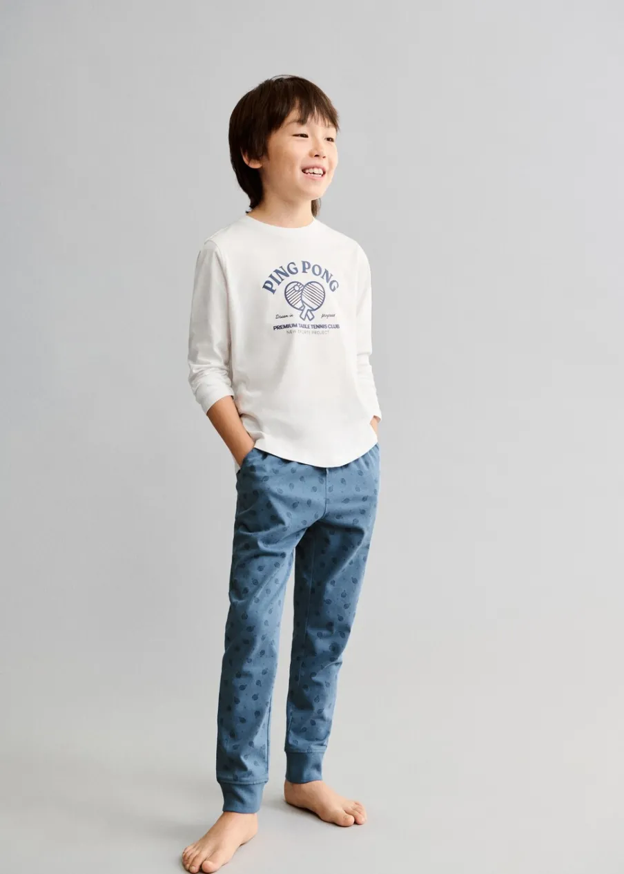 Zestaw piżamowy: koszulka i spodnie. Bawełna 100%. Model długi. Nadruk. Elastyczny pas. Okrągły dekolt. Długi rękaw. W stylu joggersów. Model prosty.