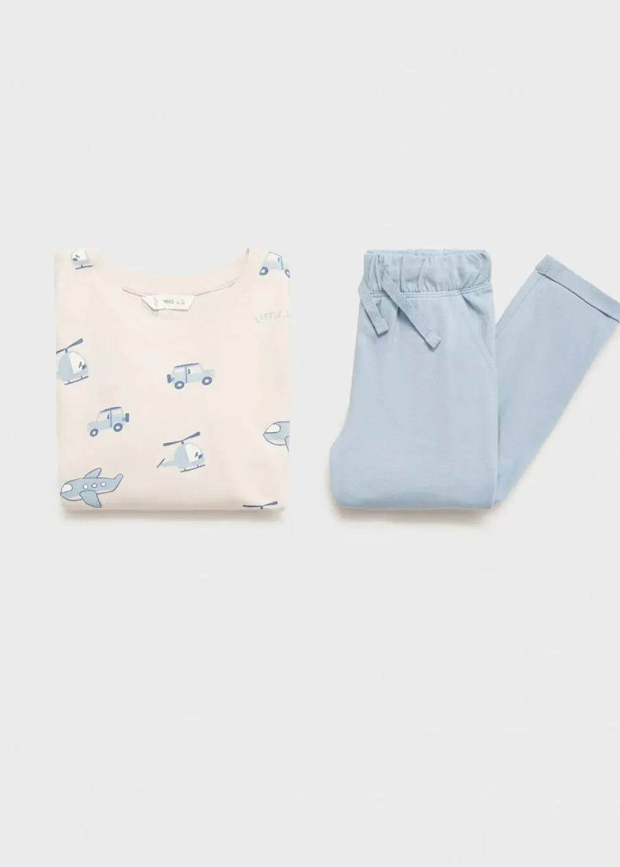 100% bomull. Zestaw piżamowy: koszulka i spodnie. Model długi. Model prosty. Wzorzysty. Zapięcie ze sznurkiem do regulacji.