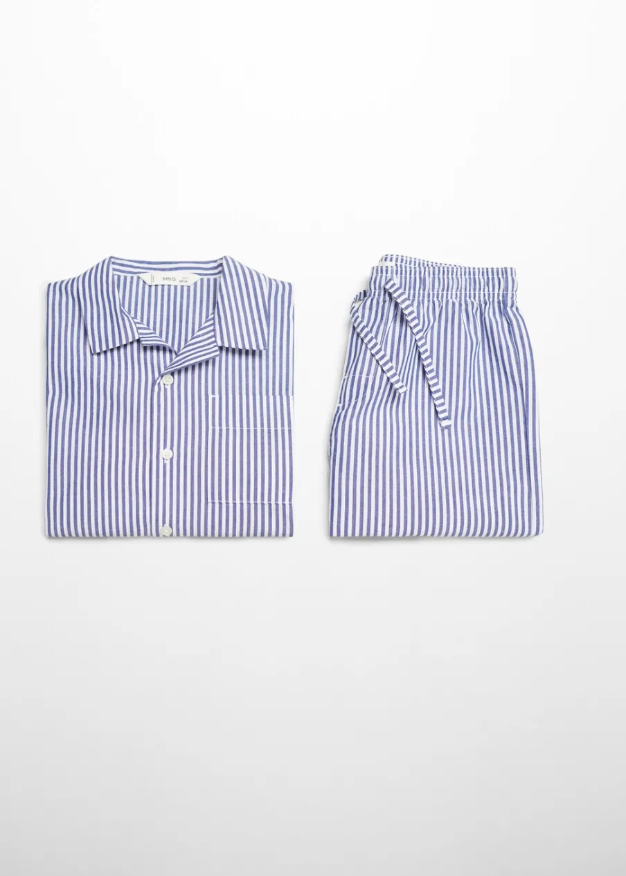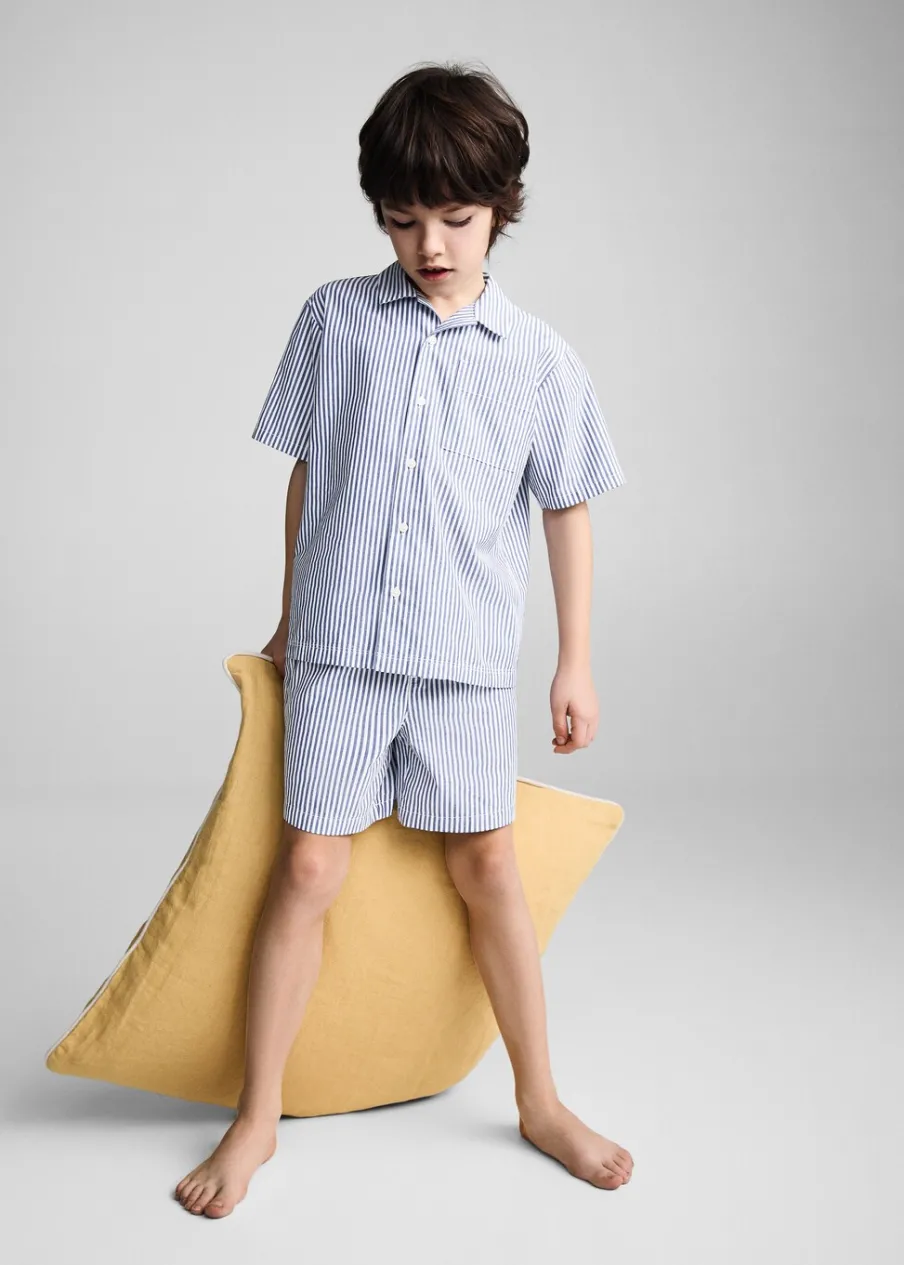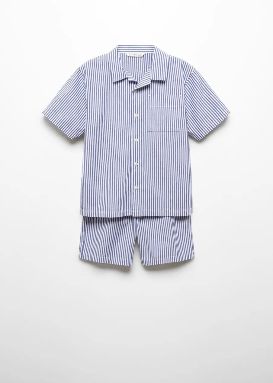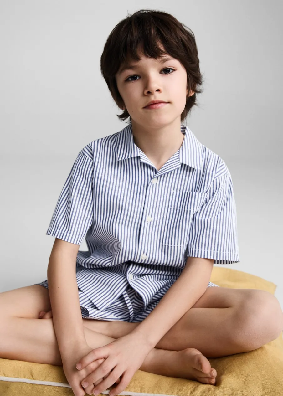Zestaw piżamowy: koszulka i spodnie. Wzorzysty. Koszulowy kołnierz. Kieszeń nakładana. Krótki rękaw. Zapięcie na guziki.