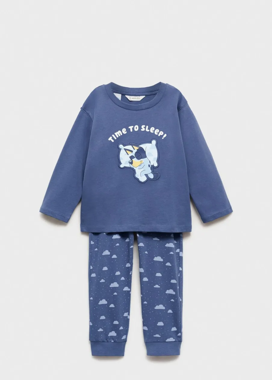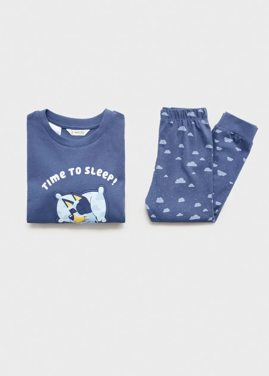 Komplet piżama z długimi nogawkami. Bawełna 100%. Nadruk Bluey. Okrągły dekolt. Elastyczny pas. Licencjonowany nadruk.