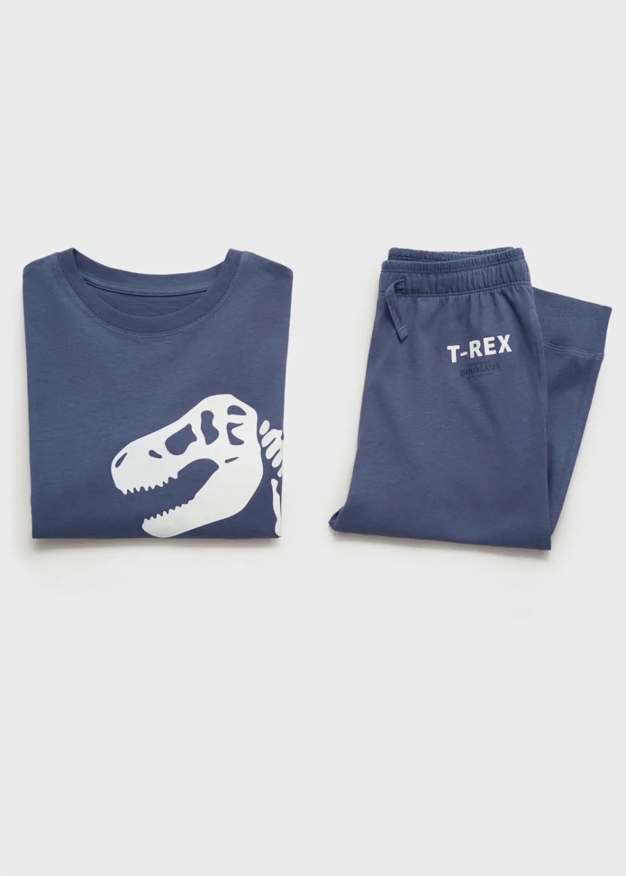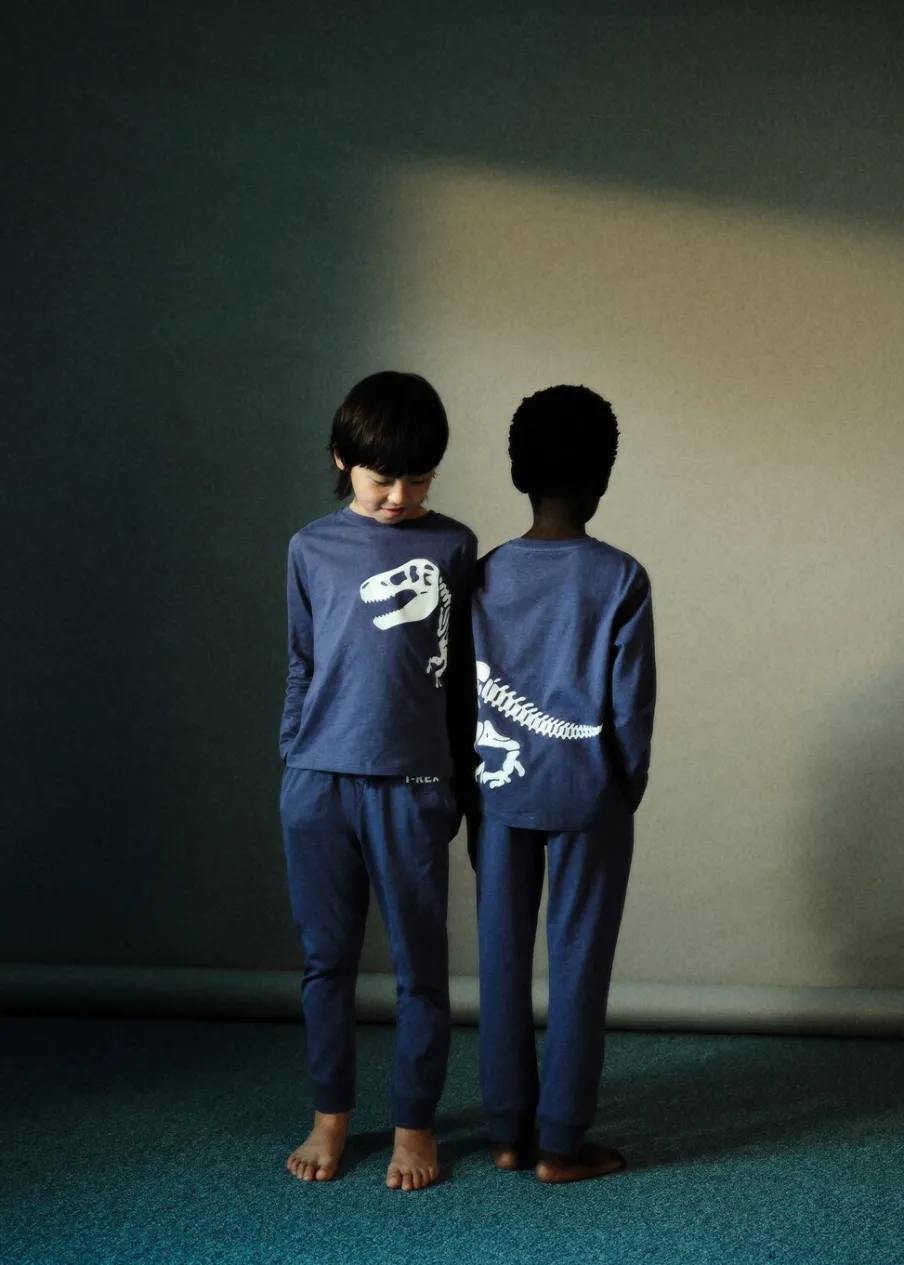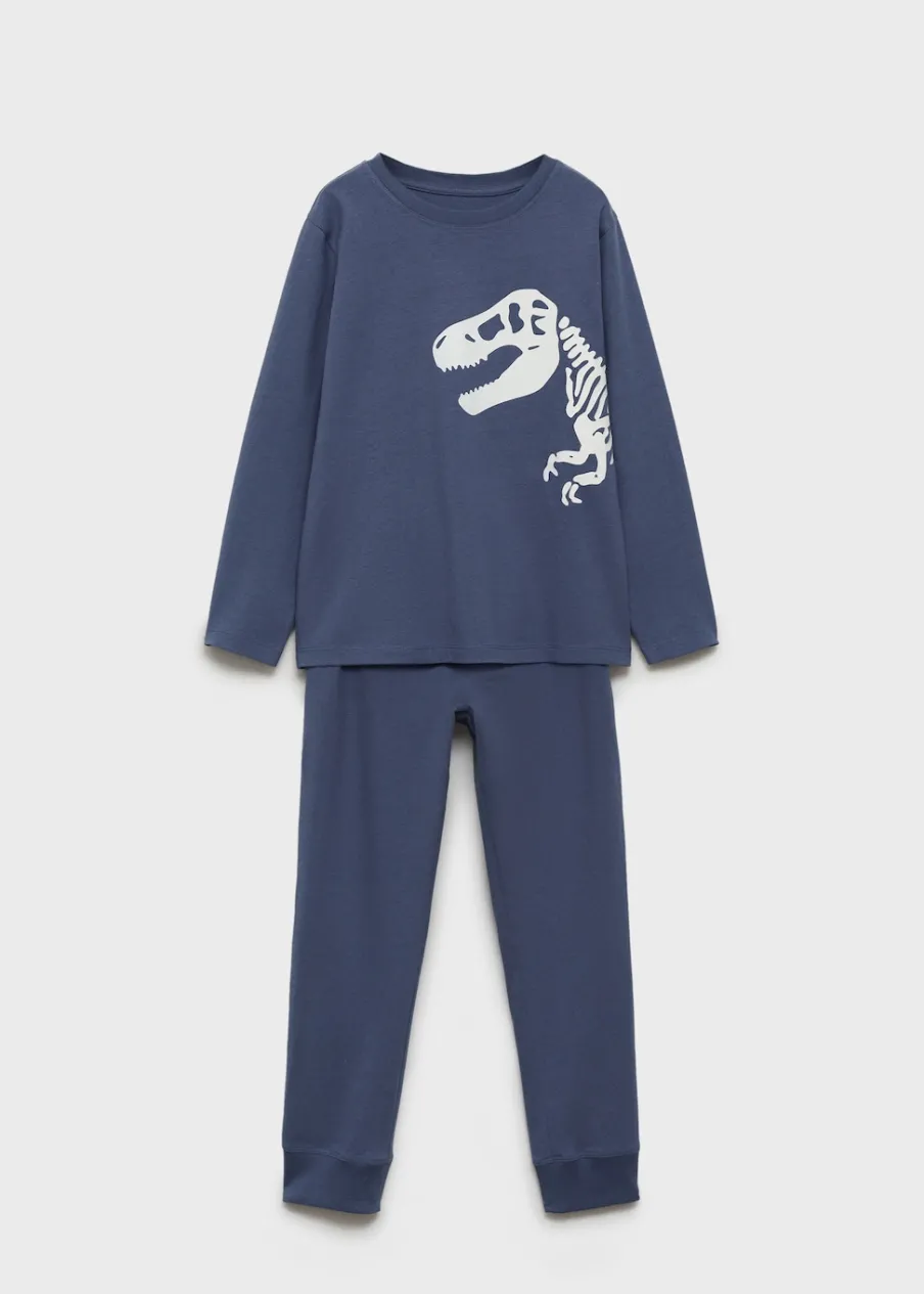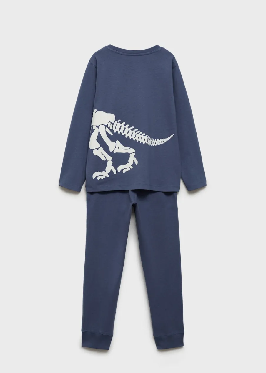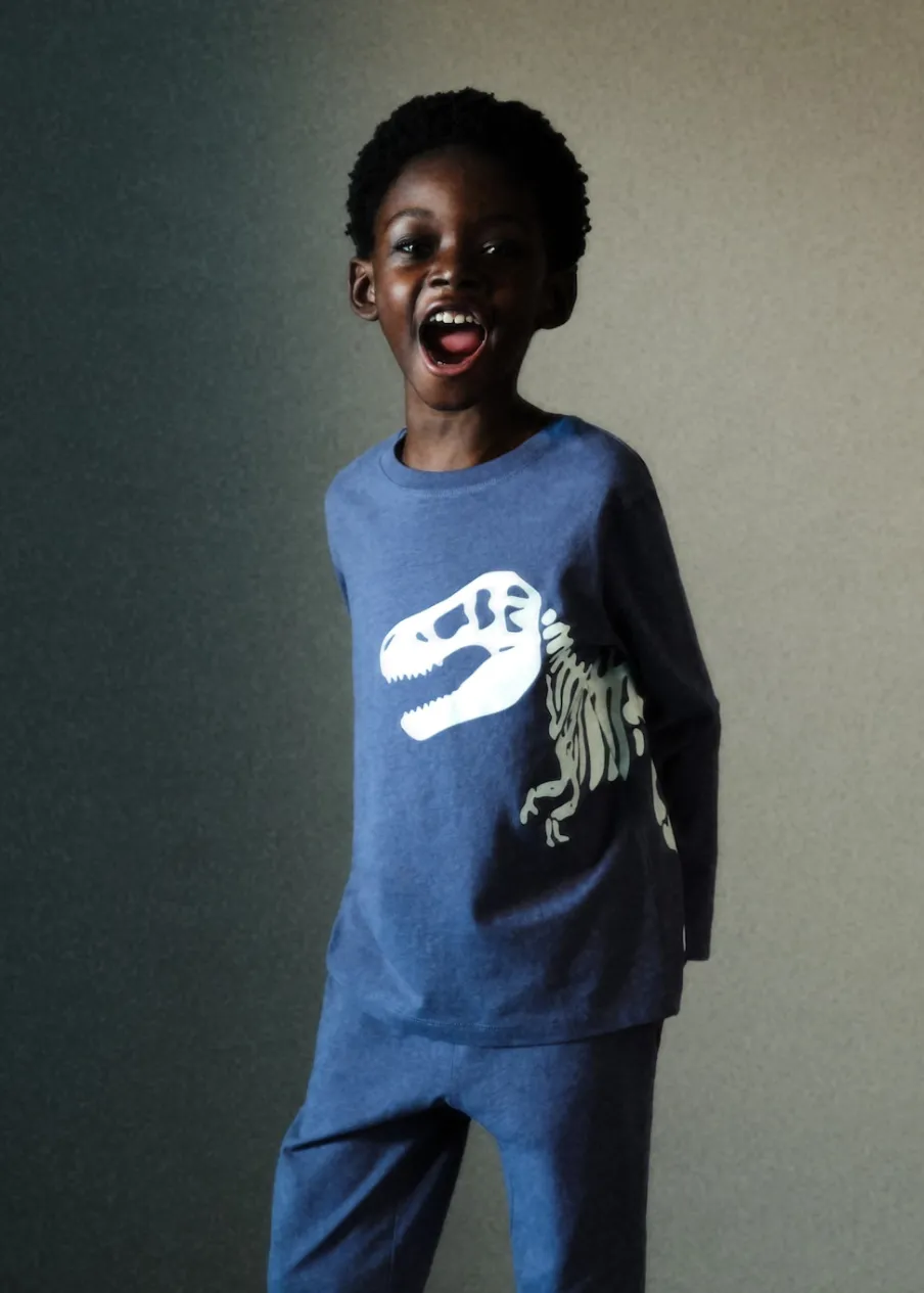 Kolekcja Halloween. Zestaw piżamowy: koszulka i spodnie. Wzór świecący w ciemności. Bawełna 100%. Model prosty. Nadruk. Model długi. Elastyczny pas. Wiązanie na sznurek. Okrągły dekolt. Długi rękaw.