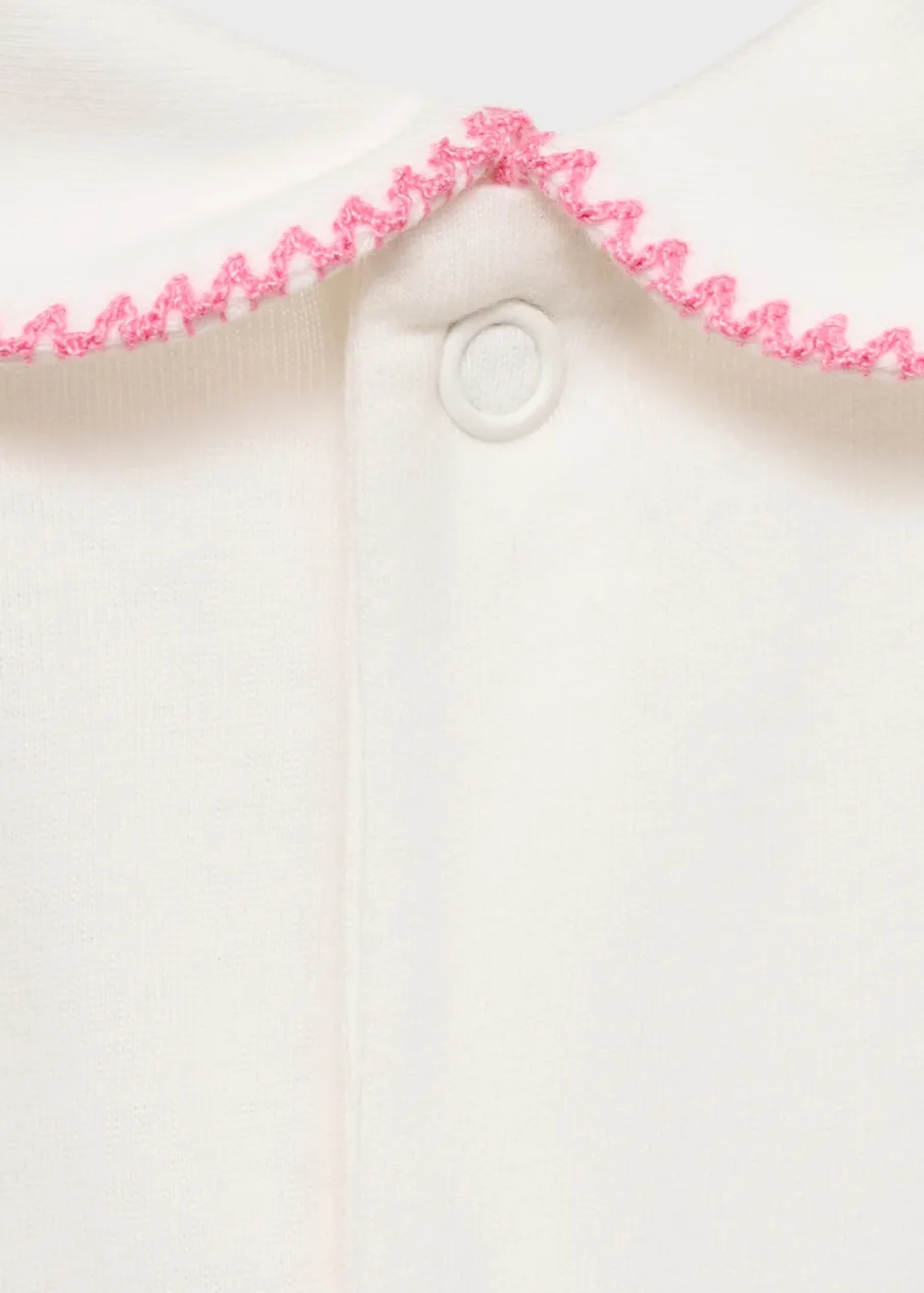 Bawełna 100%. Model prosty. Kołnierzyk bebe. Haftowane detale. Model długi. Długi rękaw. Zapięcie na zatrzaskowe guziki.
