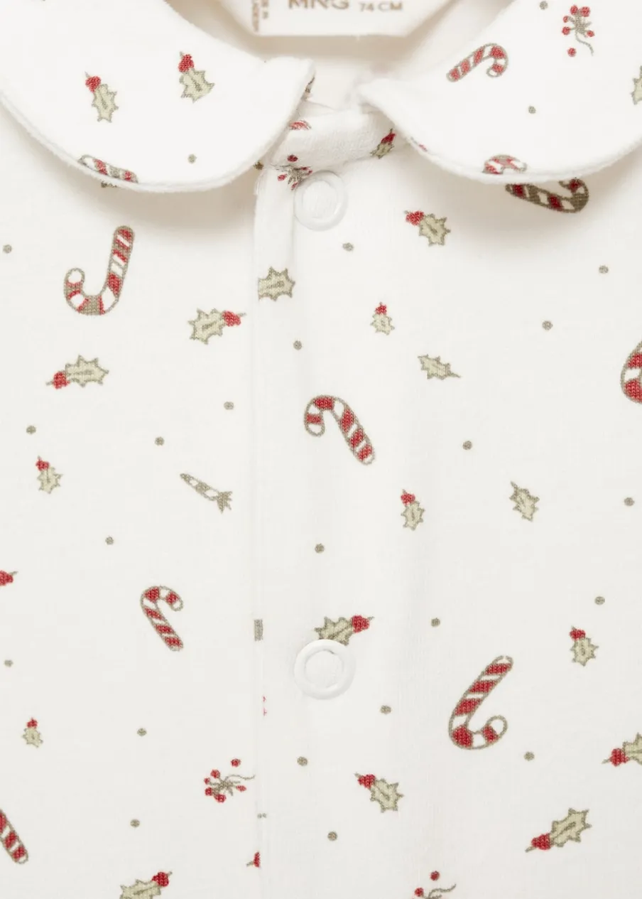 OpisTkanina bawełniana. Wzór świąteczne motywy. Kołnierzyk bebe. Długi rękaw. Zapięcie na zatrzaskowe guziki. Ko…