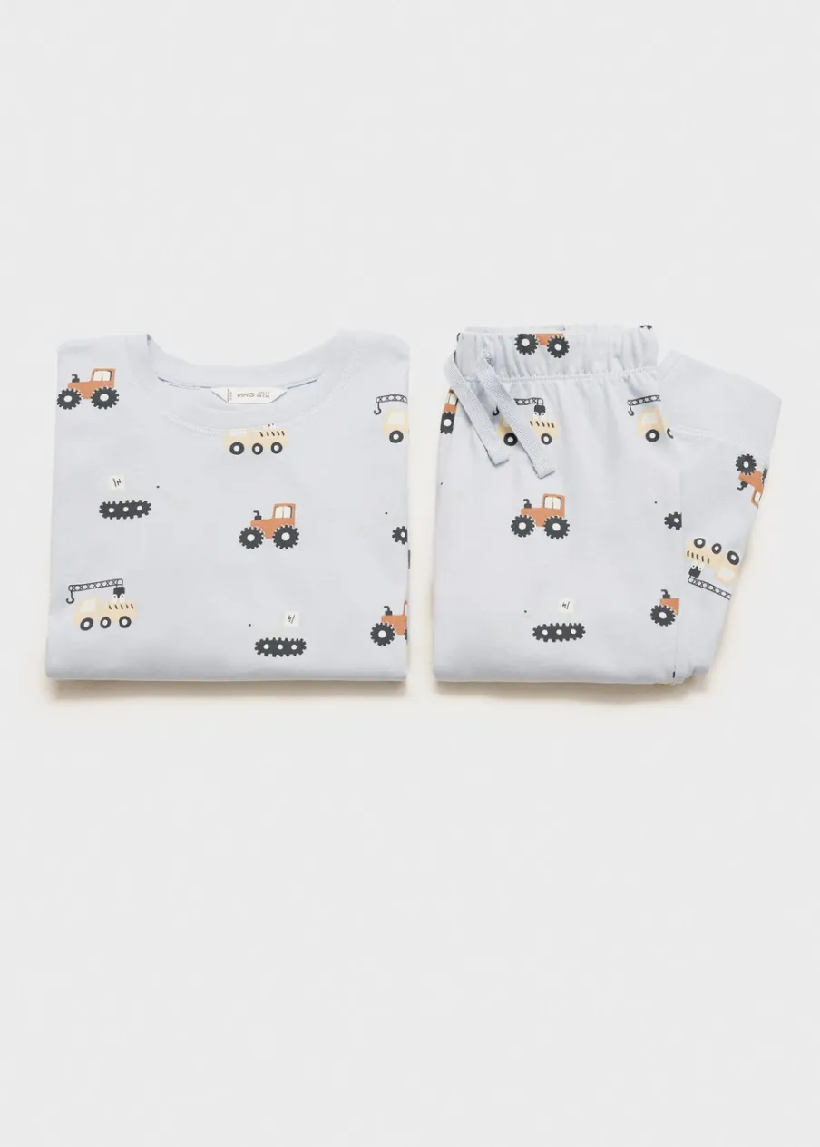 Zestaw piżamowy: koszulka i spodnie. Bawełna 100%. Model prosty. Okrągły dekolt. Nadruk z samochodem.