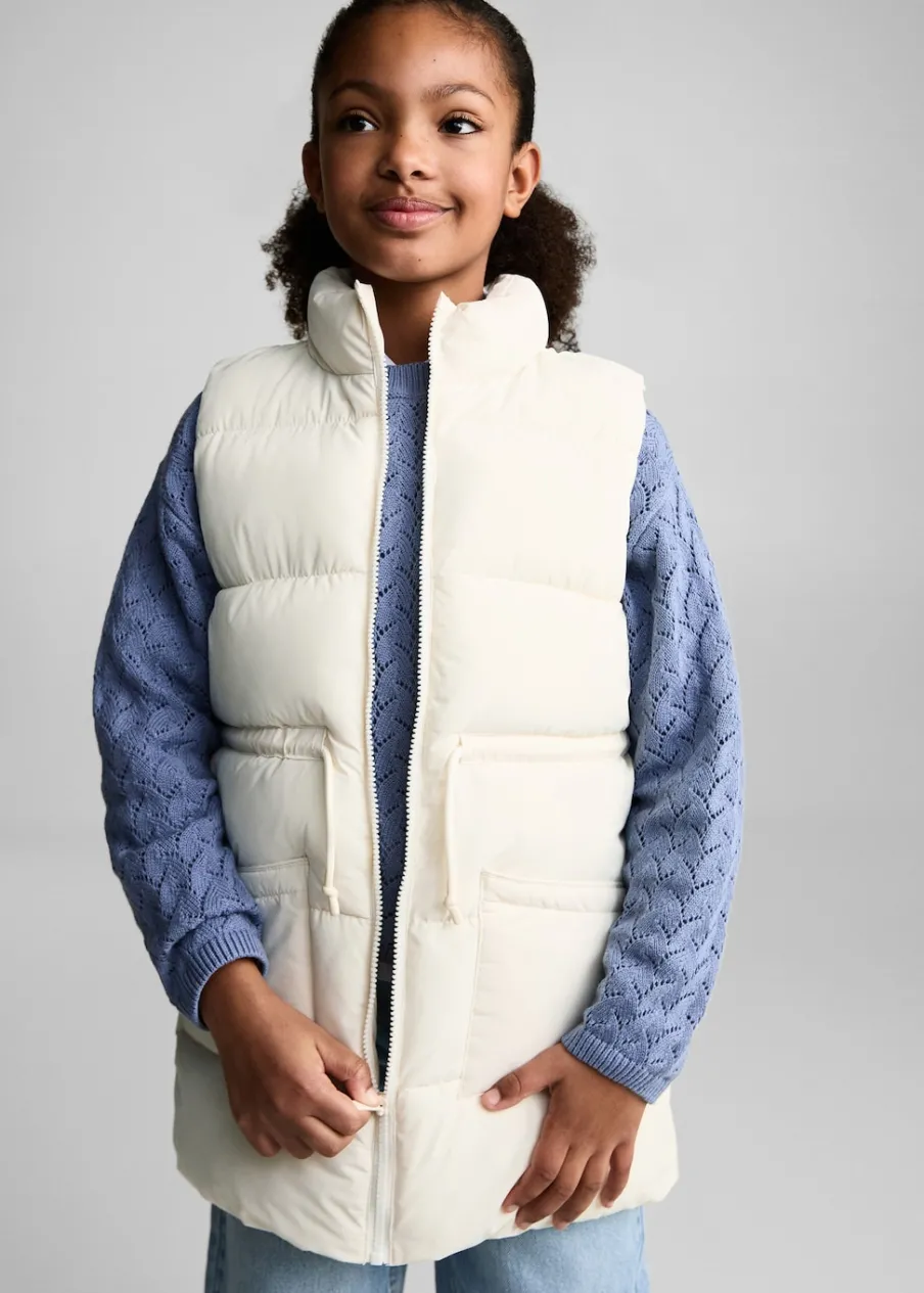 Model pikowany. Model prosty. Model długi. Golf. Bez rękawów. Talia: regulowana/gumka. Dwie kieszenie z przodu. Etykieta na dane kontaktowe. Zapięcie na zamek z przodu.