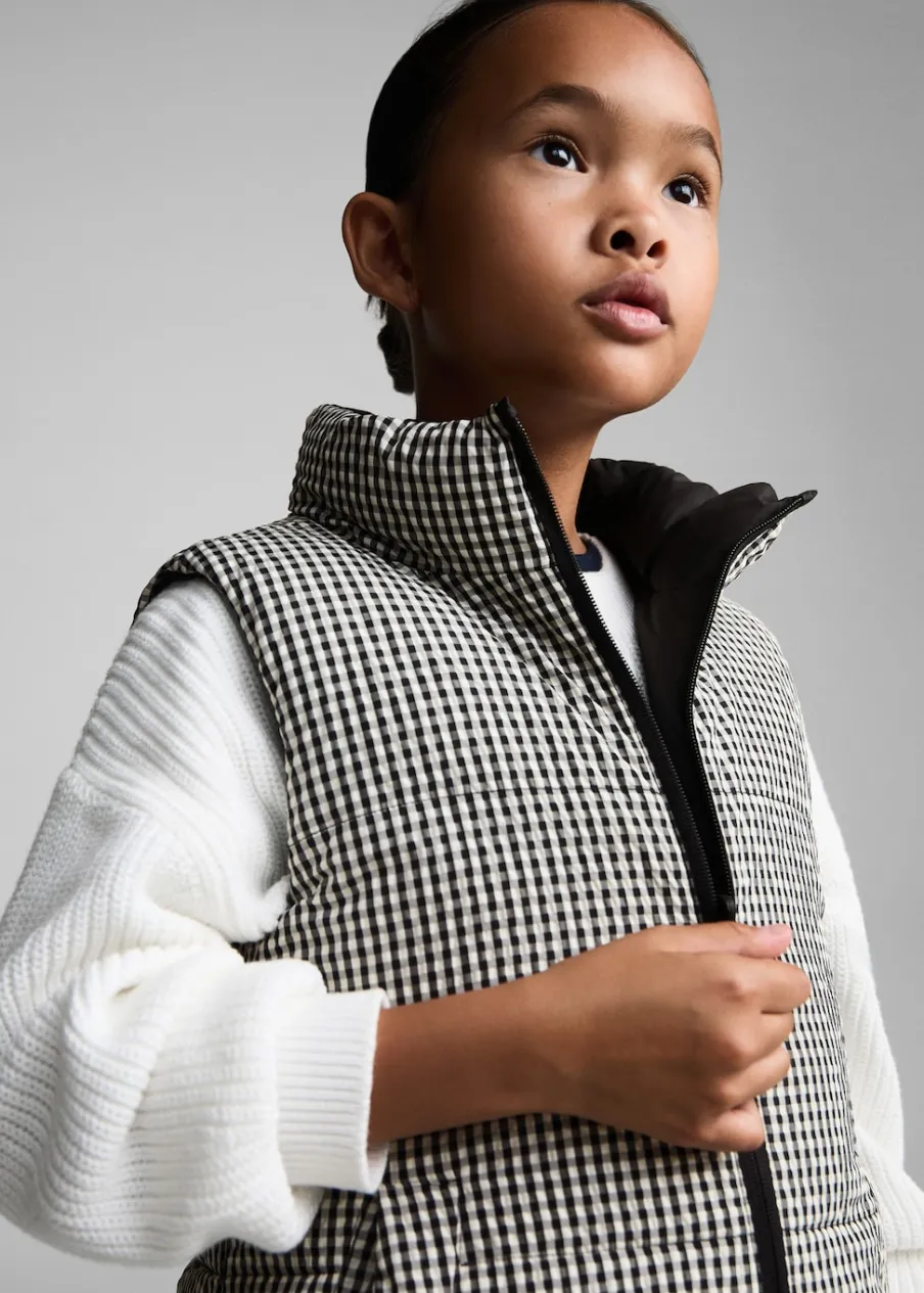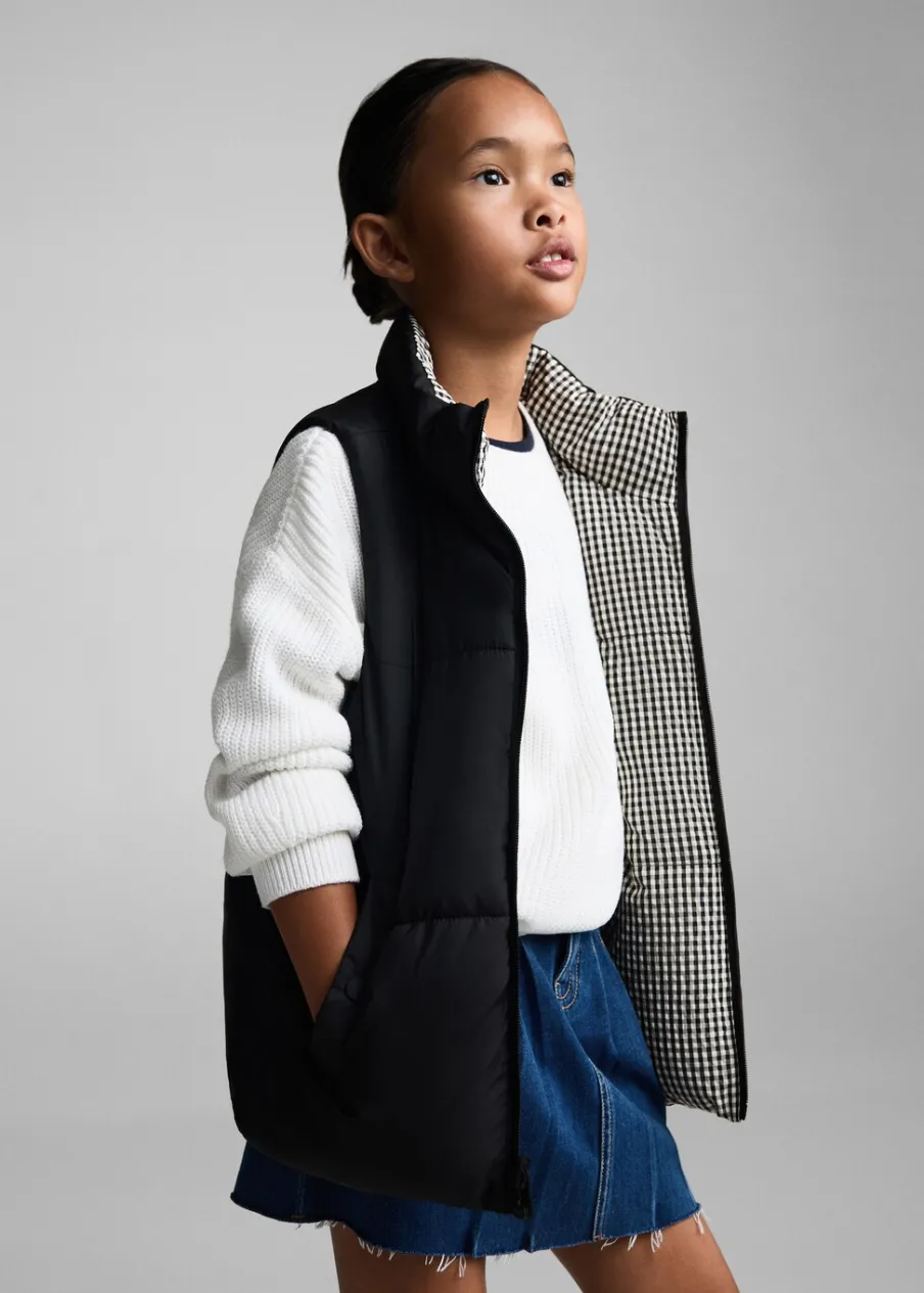 OpisModel pikowany. Model prosty. Model dwustronny. Golf. Dwie kieszenie boczne. Bez rękawów. Zapięcie na suwak.