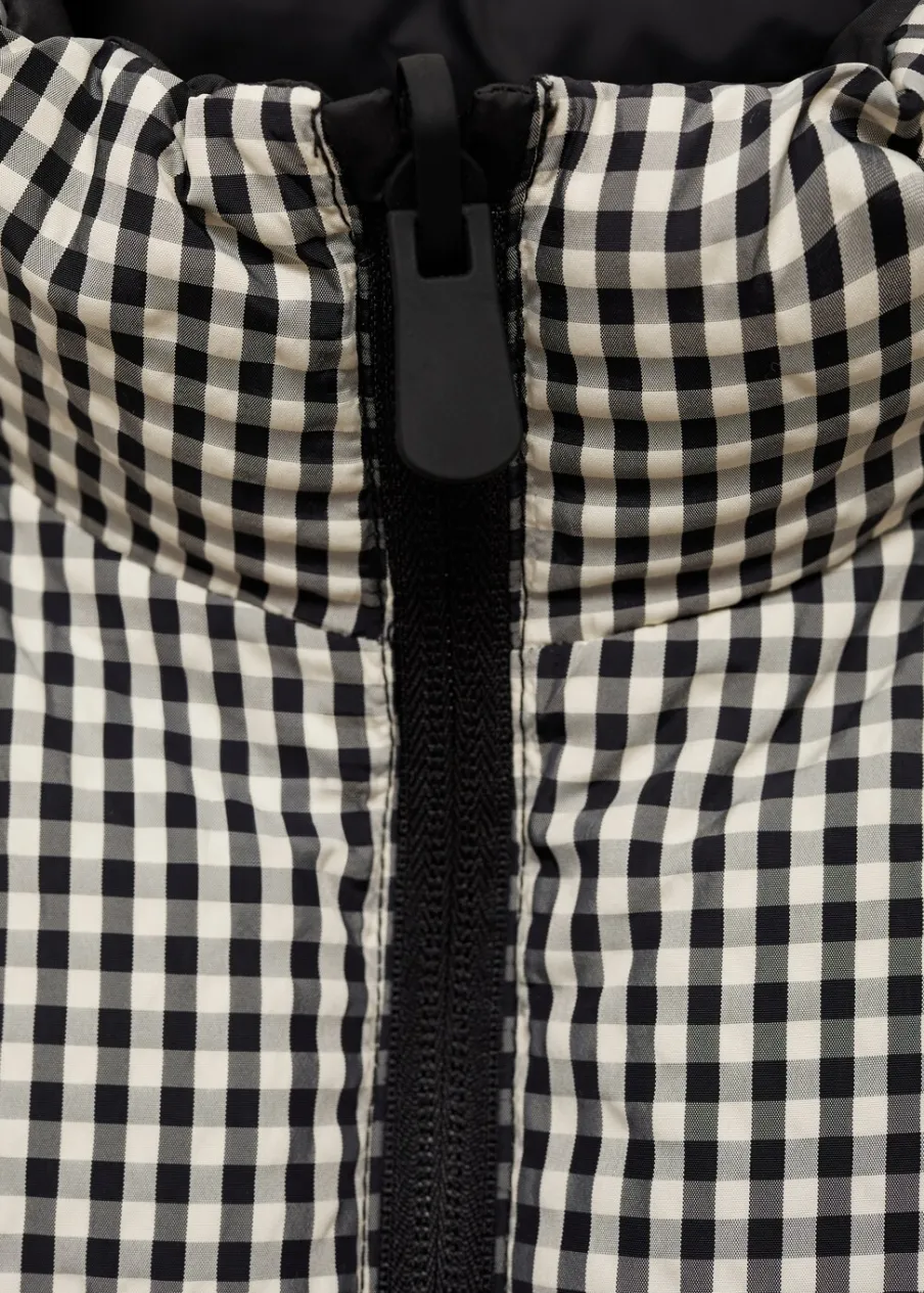 Model pikowany. Model prosty. Model dwustronny. Golf. Dwie kieszenie boczne. Bez rękawów. Zapięcie na suwak.