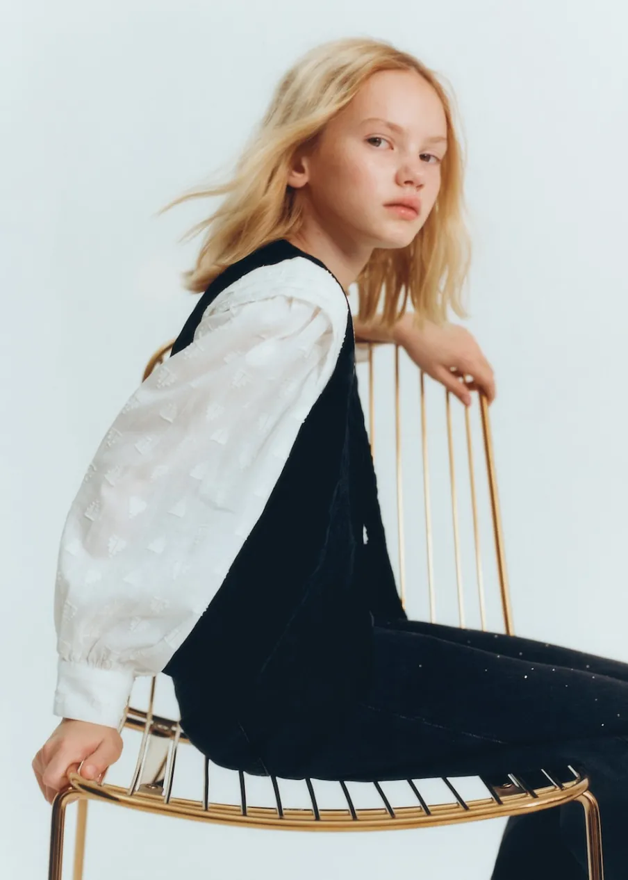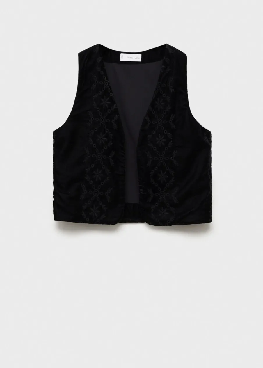 OpisTkanina z bawełną. Aksamitna tkanina. Bez rękawów. Model prosty. Dekolt V. Deseń crop. Haftowane detale. Kolekc…